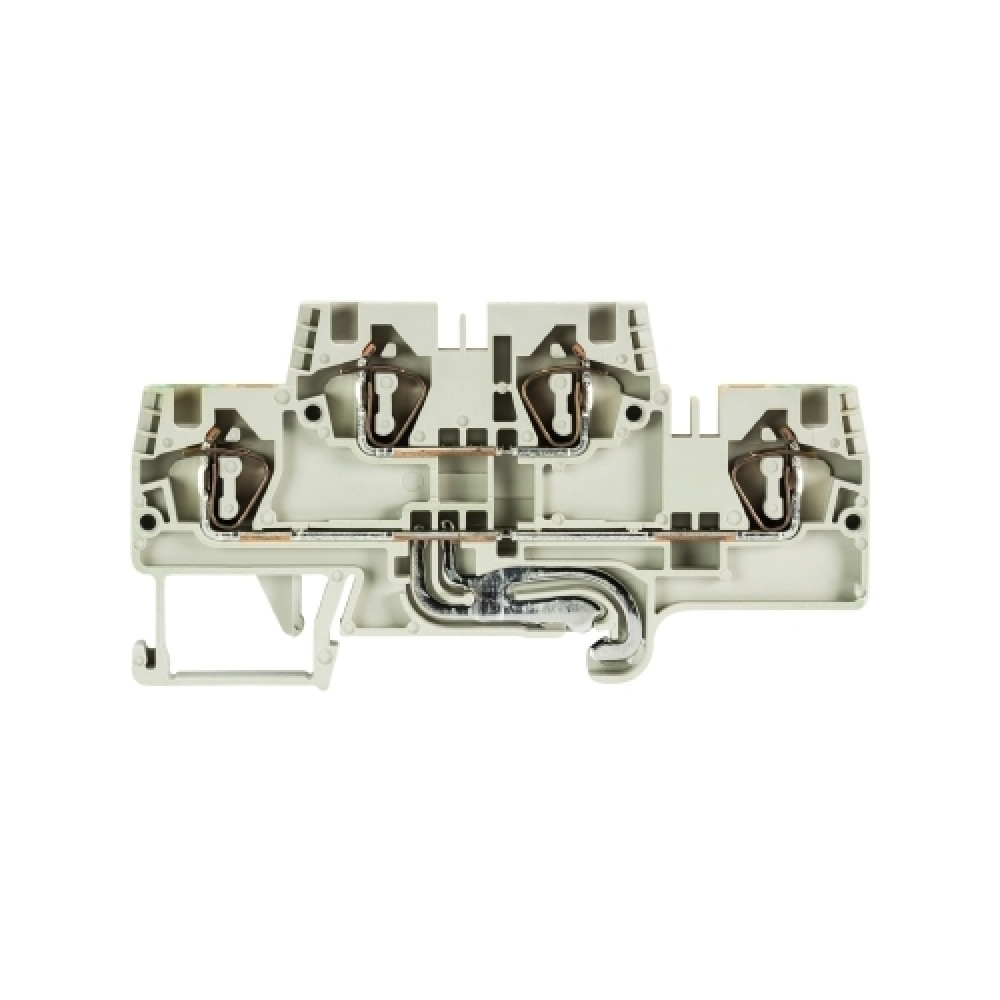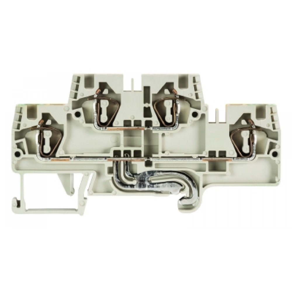 Этажная клемма, 2 этажа, L-PE, нижний ряд с заземлением, тип фиксации провода: пружинный, номинальное сечение: 4 мм кв., 32A, 500V, ширина: 6 мм, цвет: серый, тип монтажа: DIN35