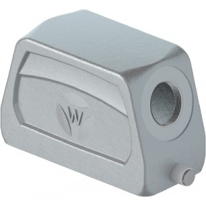 Крышка разъема на кабель, типоразмер 16B, без уплотнителя, 1 отверстие с резьбой для кабельных вводов M32x1,5, с боковым расположением, без защелки (упоры под одну защелку), материал корпуса: алюминиевый сплав