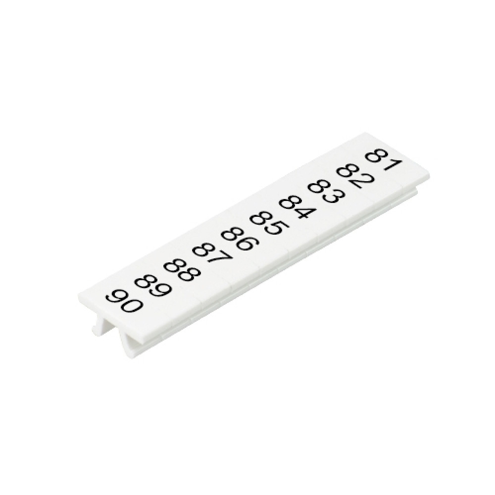 Маркировка для клемм (полоска) M1.008.0104.3, Маркировочные шильдики, для клемм сечением 1,5 мм.кв., WKF 1.5, верхняя, 10 шильдиков, нанесенные символы: 81...90, с горизонтальным расположением, размер шильдика: 4 x 10,5 мм, цвет: белый