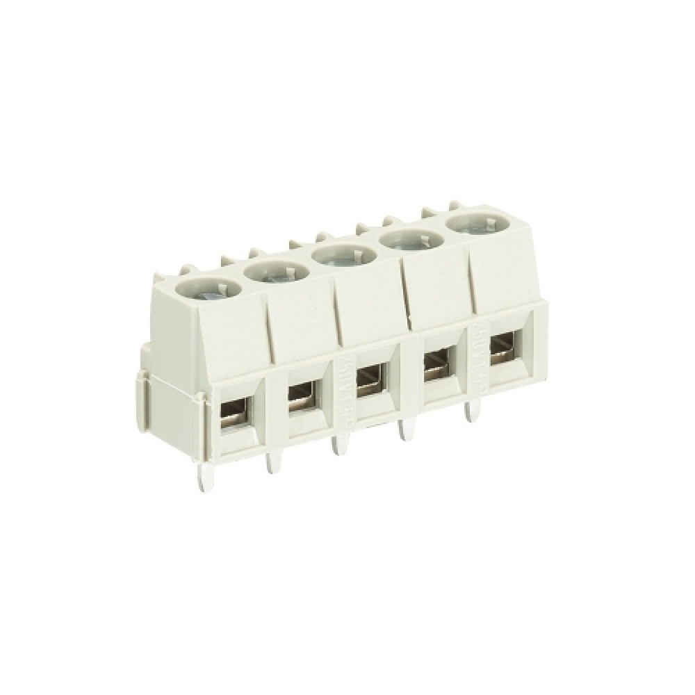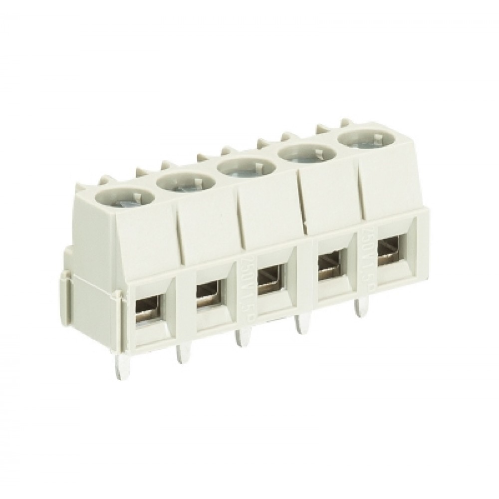 Клемма горизонтальный подвод кабеля, на плату, шаг: 5.0 мм, 5 полюсов, фиксация провода винтовая, исполнение: с маркировкой, 300V, 10A, цвет: серый