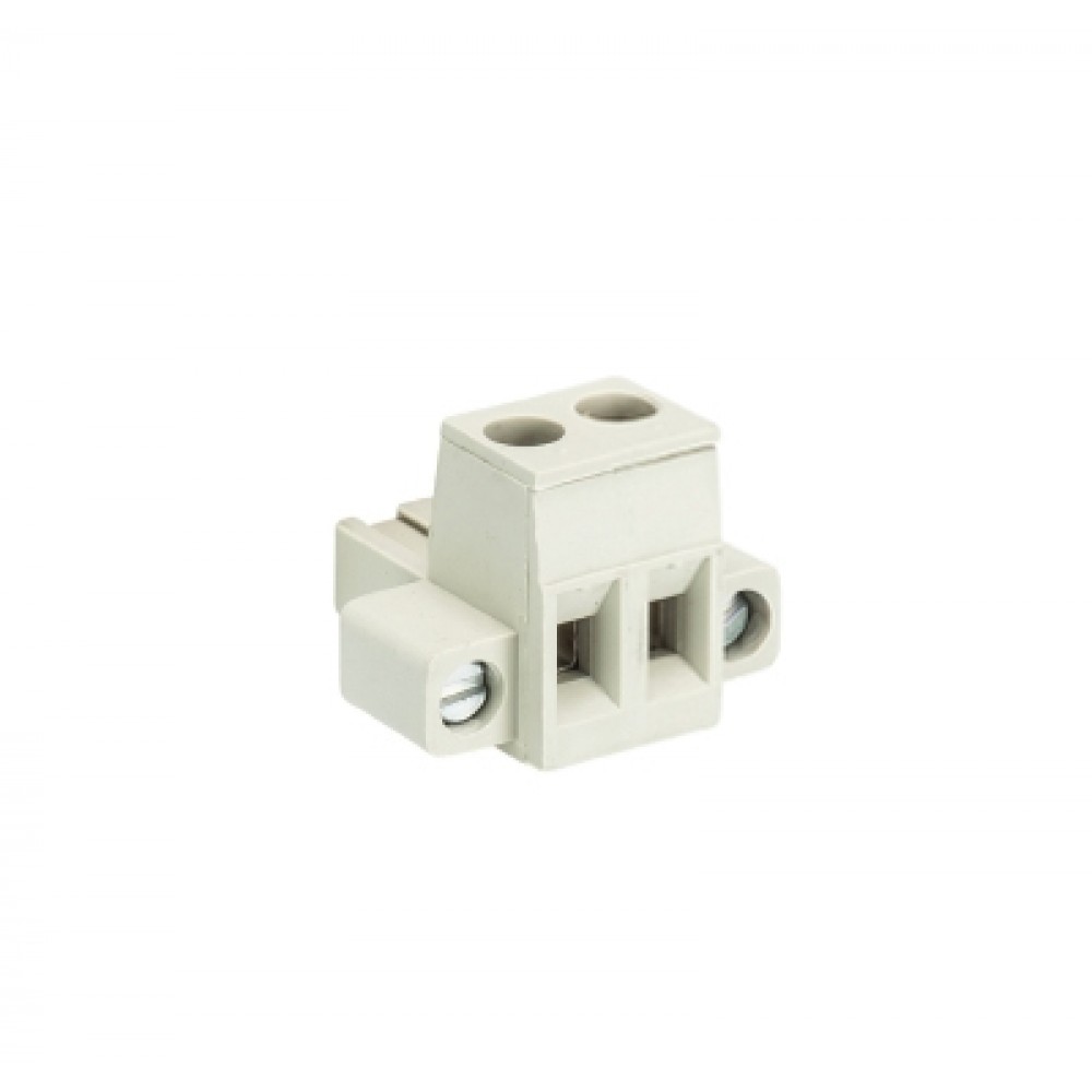 Розеточный разъем, прямой, на кабель, шаг: 5.0 мм, 2 полюса, фиксация провода винтовая, исполнение: с монтажными фланцами, с маркировкой, 400V, 12А, цвет: серый