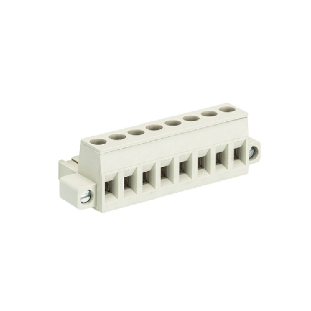 Розеточный разъем, угловой, на кабель, шаг: 5.08 мм, 8 полюсов, фиксация провода винтовая, исполнение: с монтажными фланцами, без маркировки, 400V, 12А, цвет: серый