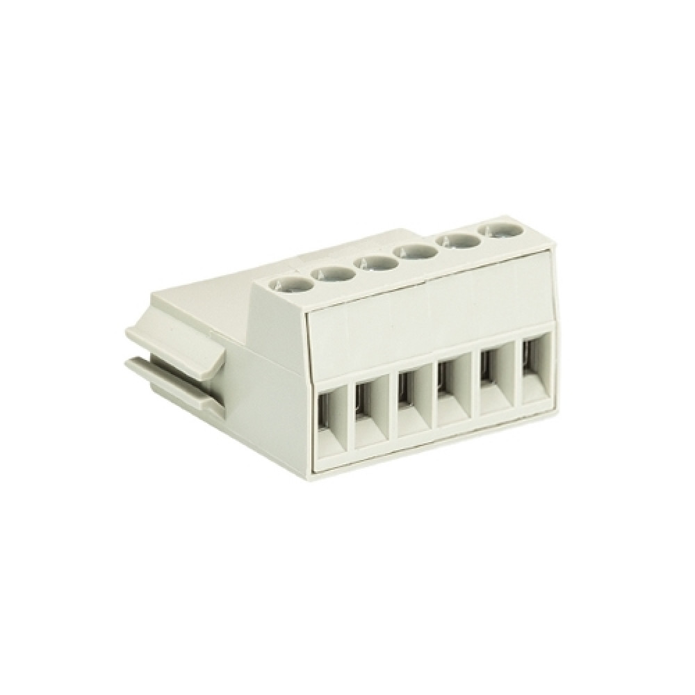 Клемма DSTLF85/ 6, Клемма для торцевого подключения к печатной плате, подвод кабеля сбоку, шаг: 3.5 мм, 6 полюсов, фиксация провода винтовая, исполнение: с маркировкой, 125V, 6A цвет: серый