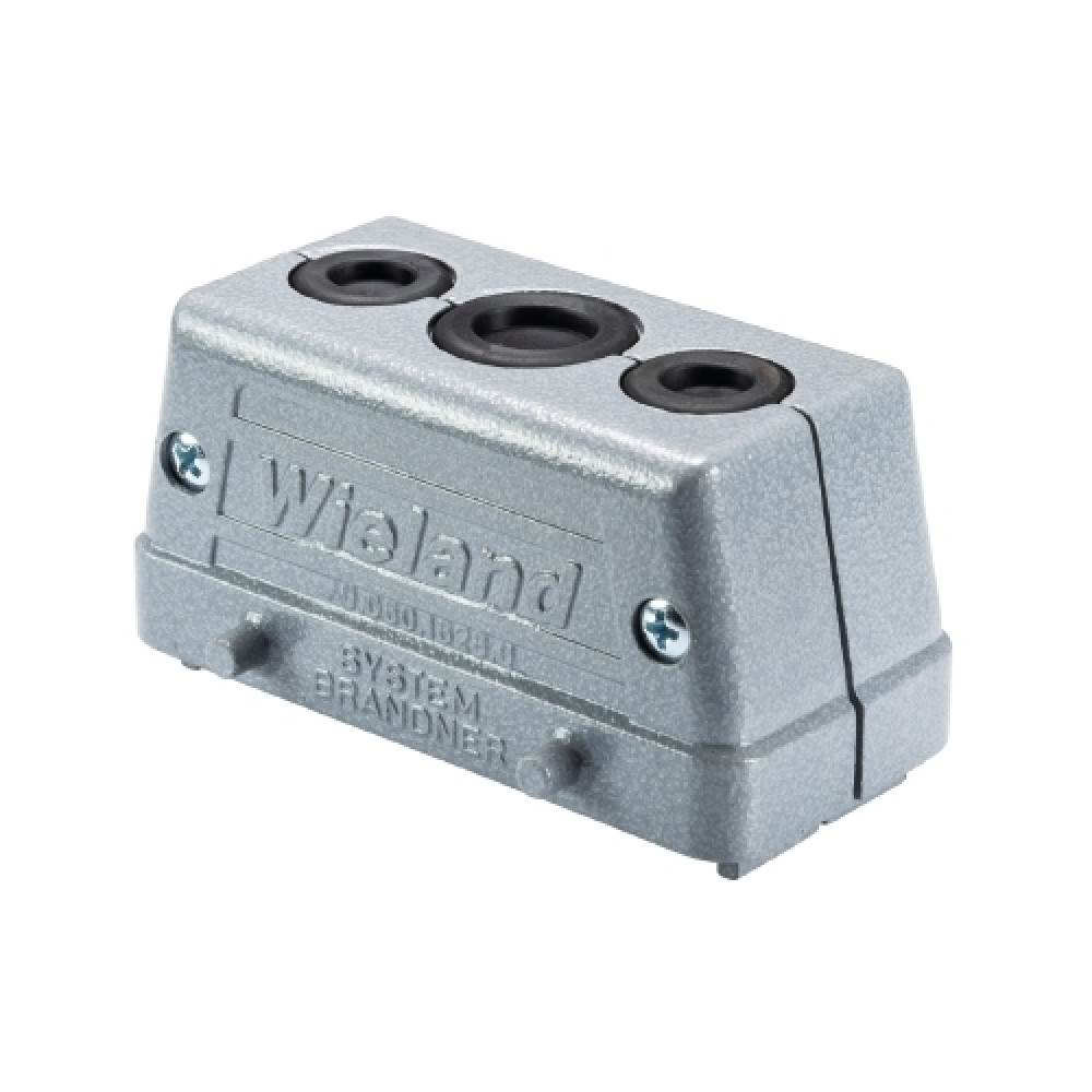 Крышка разъема IT DKE 16, Крышка разъема на кабель, типоразмер 16B, IT, без уплотнителя, 3 кабельных ввода с верхним расположением, без защелок (упоры для двух защелок), материал корпуса: алюминиевый сплав