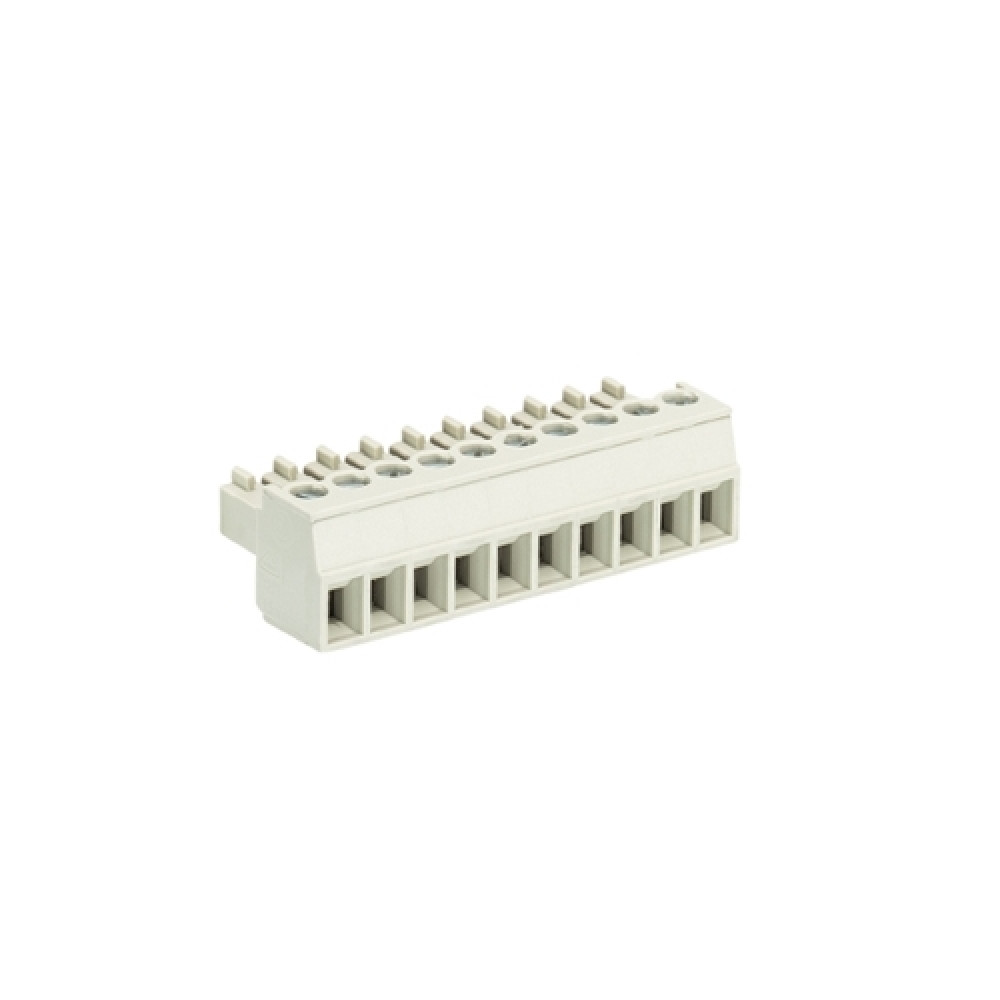 Розеточный разъем, угловой, на кабель, шаг: 3.5 мм, 10 полюсов, фиксация провода винтовая, исполнение: с маркировкой, 250V, 8А, цвет: серый