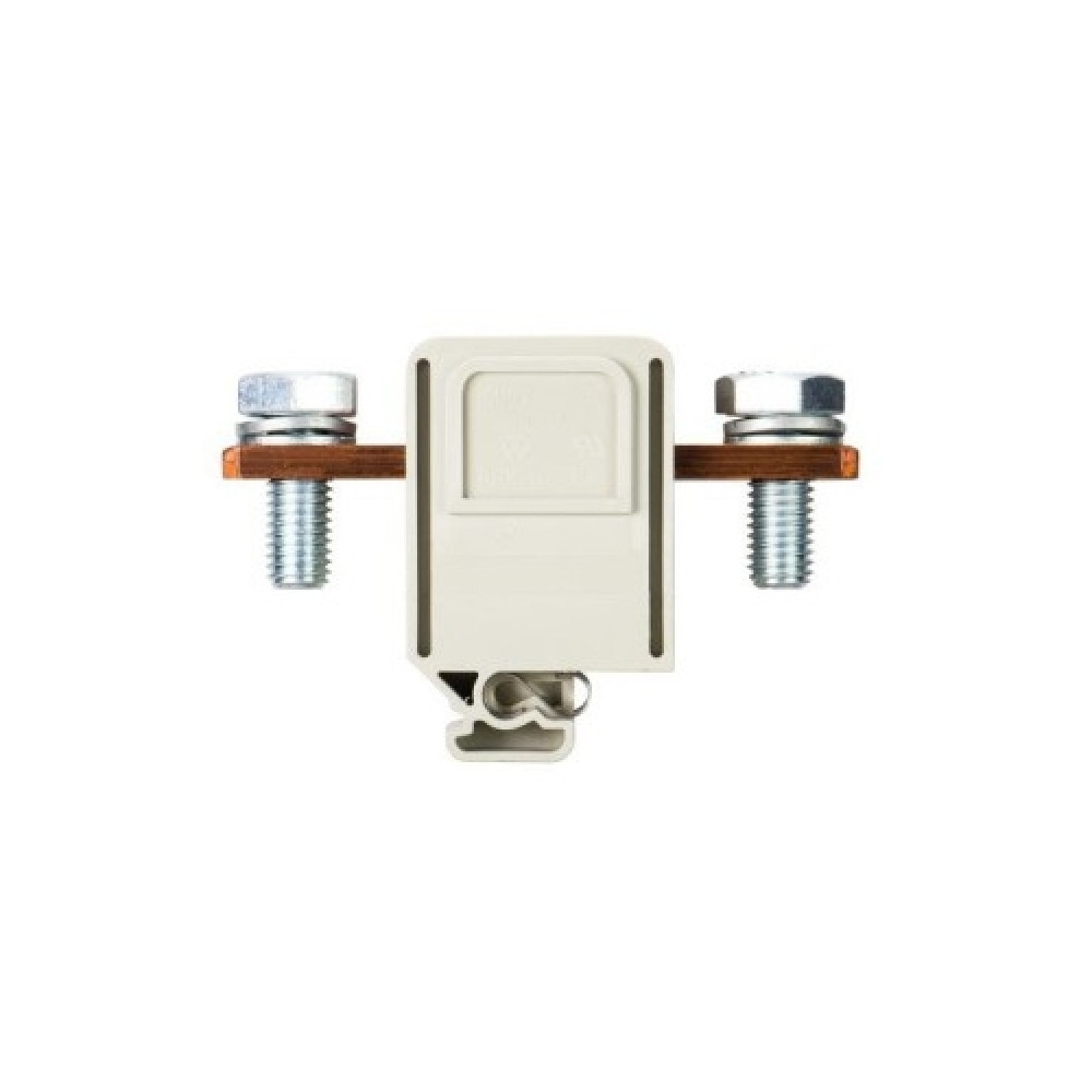 Болтовая клемма, М10, схема: зажим - зажим, тип фиксации провода: зажим-зажим, номинальное сечение: 95 мм кв., 250A, 1000V, ширина: 32 мм, цвет: серый, тип монтажа: G-рейка