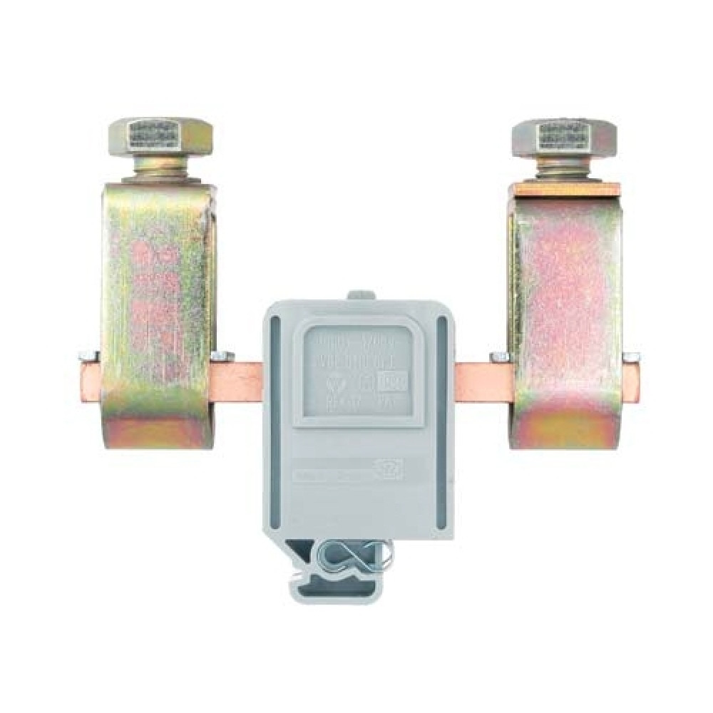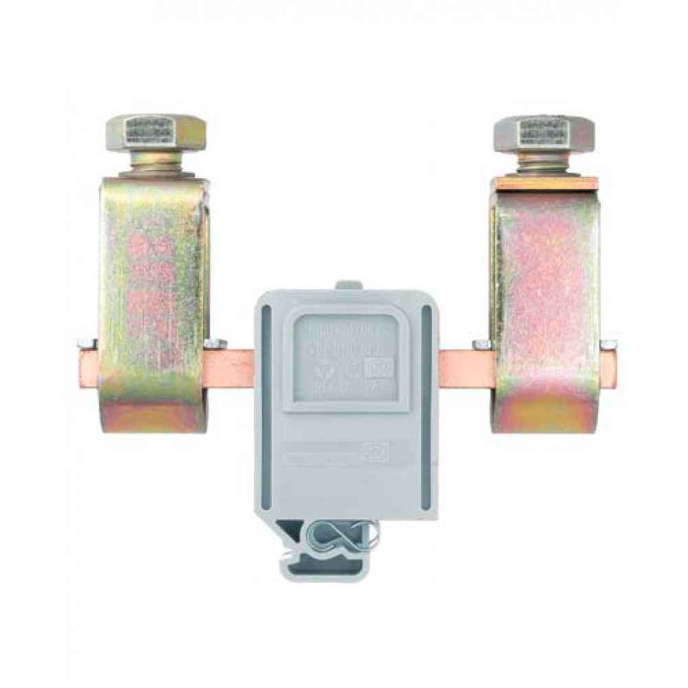 Болтовая клемма, М12, схема: зажим - зажим, тип фиксации провода: зажим-зажим, номинальное сечение: 240 мм кв., 415A, 1000V, ширина: 42 мм, цвет: серый, тип монтажа: G-рейка