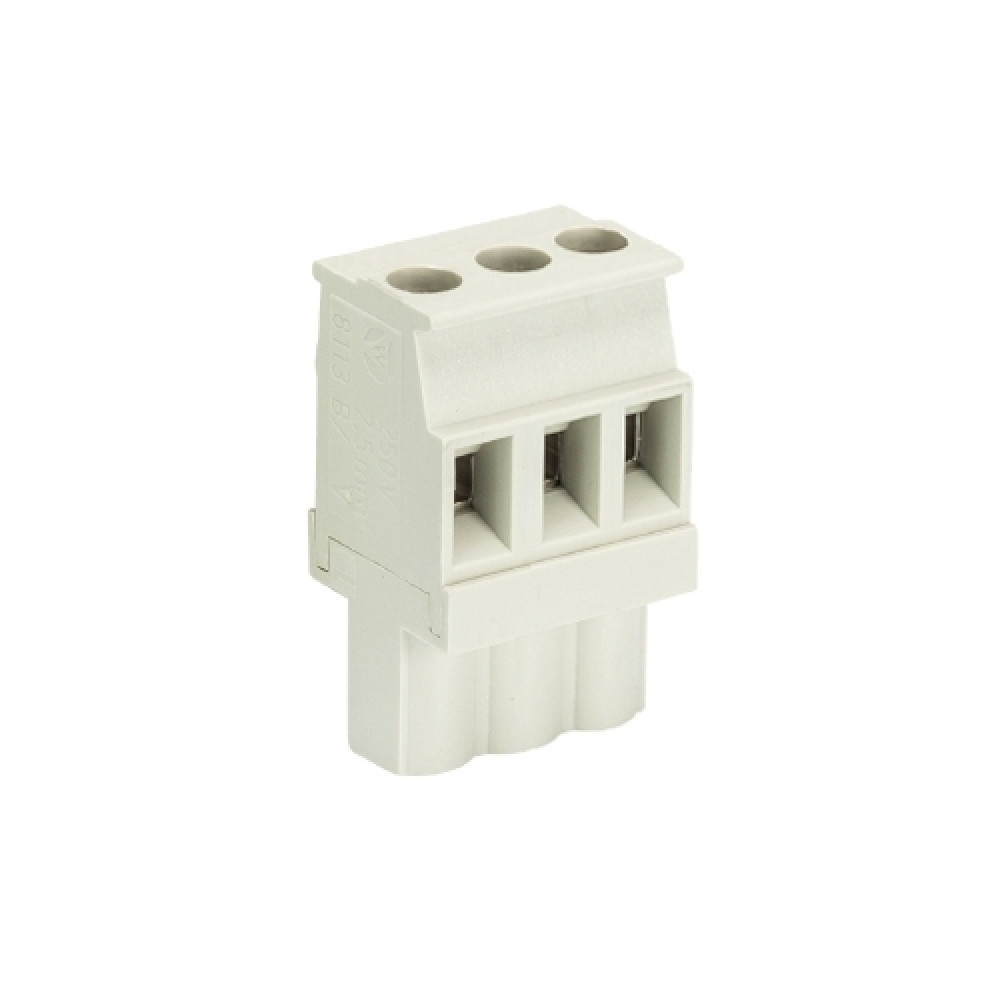 Розеточный разъем на кабель 8213 B/3 VL OB, Розеточный разъем, прямой, на кабель, шаг: 5.08 мм, 3 полюса, фиксация провода винтовая, исполнение: без маркировки, 400V, 12А, цвет: серый