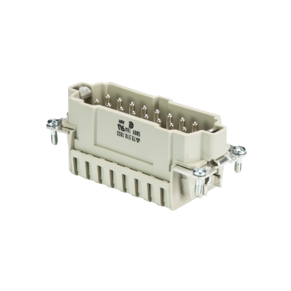 Вилочная контактная вставка, пружинная фиксация, 16 полюсов + PE, типоразмер 16B, 500V, 16A, сечение обслуживаемых проводников 0,75-2,5 мм кв, тип покрытия контактов: серебро