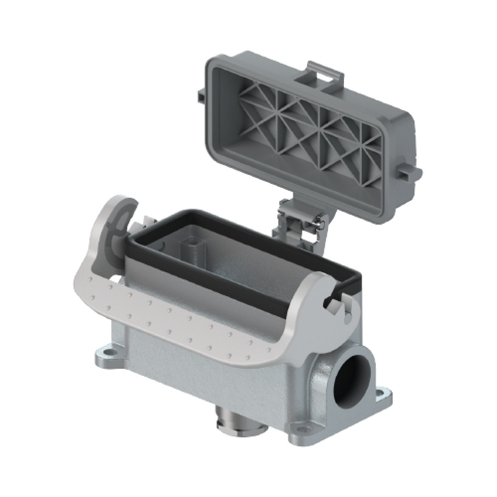 Основание разъема на панель, закрытое, типоразмер 16B, с уплотнителем, 1 кабельный ввод M25x1,5, IP54, с нижним расположением, с одной защелкой, с защитной крышкой, материал корпуса: алюминиевый сплав