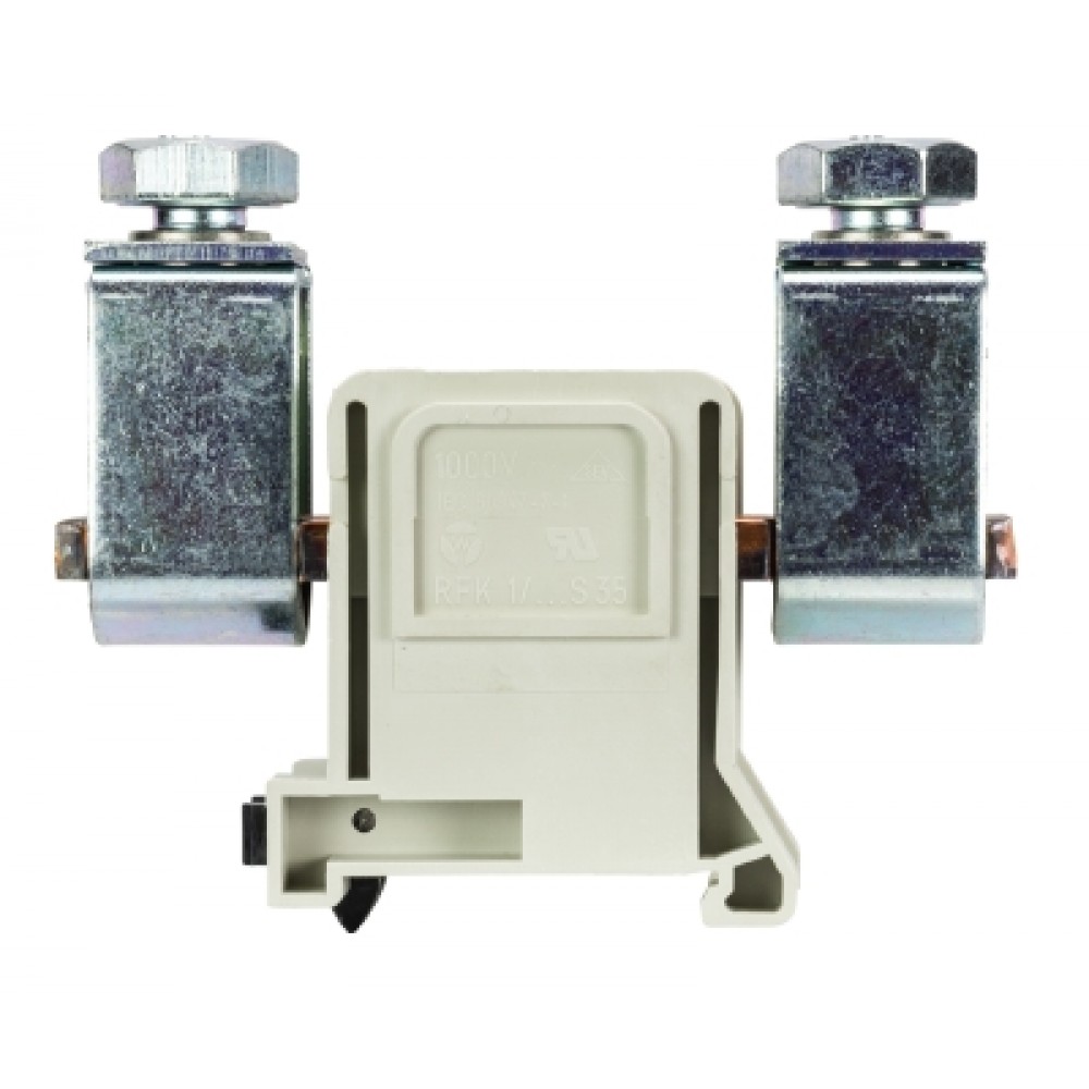 Доставка Болтовая клемма RFK 1 / 150 K S35 , Болтовая клемма, М12, схема: зажим - зажим, тип фиксации провода: зажим-зажим, номинальное сечение: 150 мм кв., 335A, 1000V, ширина: 42 мм, цвет: серый, тип монтажа: DIN35