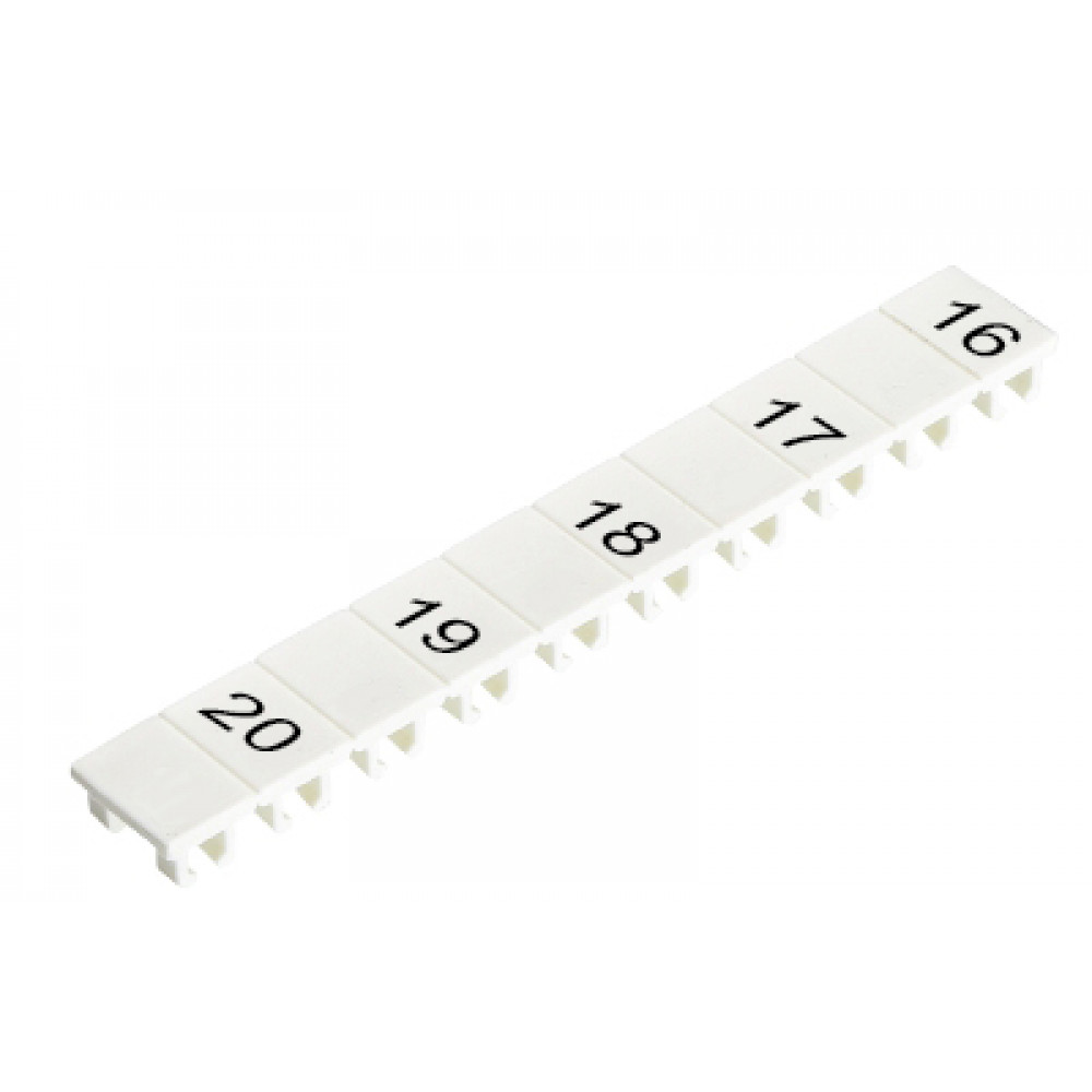 Маркировочные шильдики, для клемм сечением 4 мм.кв., боковая / верхняя, 10 шильдиков, нанесенные символы: 16, пробел,17, ,18, ,19, ,20, с горизонтальным расположением, размер шильдика: 5,75 x 8,3 мм, цвет: белый