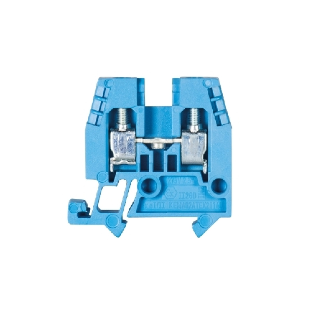 Проходная клемма, MINI, боковой подвод кабеля, 2 точки подключения, тип фиксации провода: винтовой, номинальное сечение: 2,5 мм кв., 32A, 400V, ширина: 5,2 мм, цвет: синий, тип монтажа: DIN15