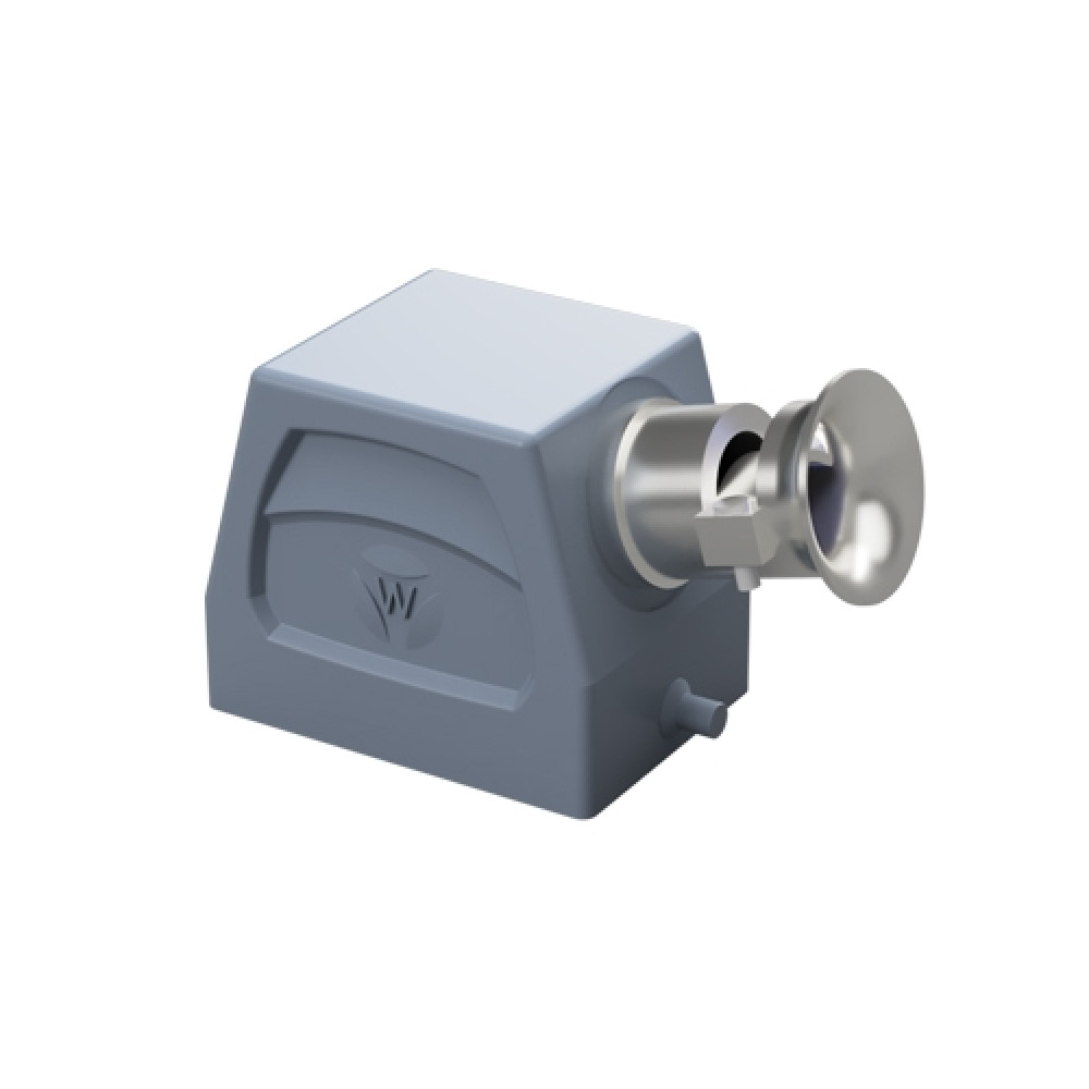 Крышка разъема на кабель, типоразмер 6B, без уплотнителя, 1 отверстие с резьбой для кабельных вводов M20x1,5, с резьбовым удлинителем, с боковым расположением, без защелки (упоры под одну защелку), материал корпуса: алюминиевый сплав