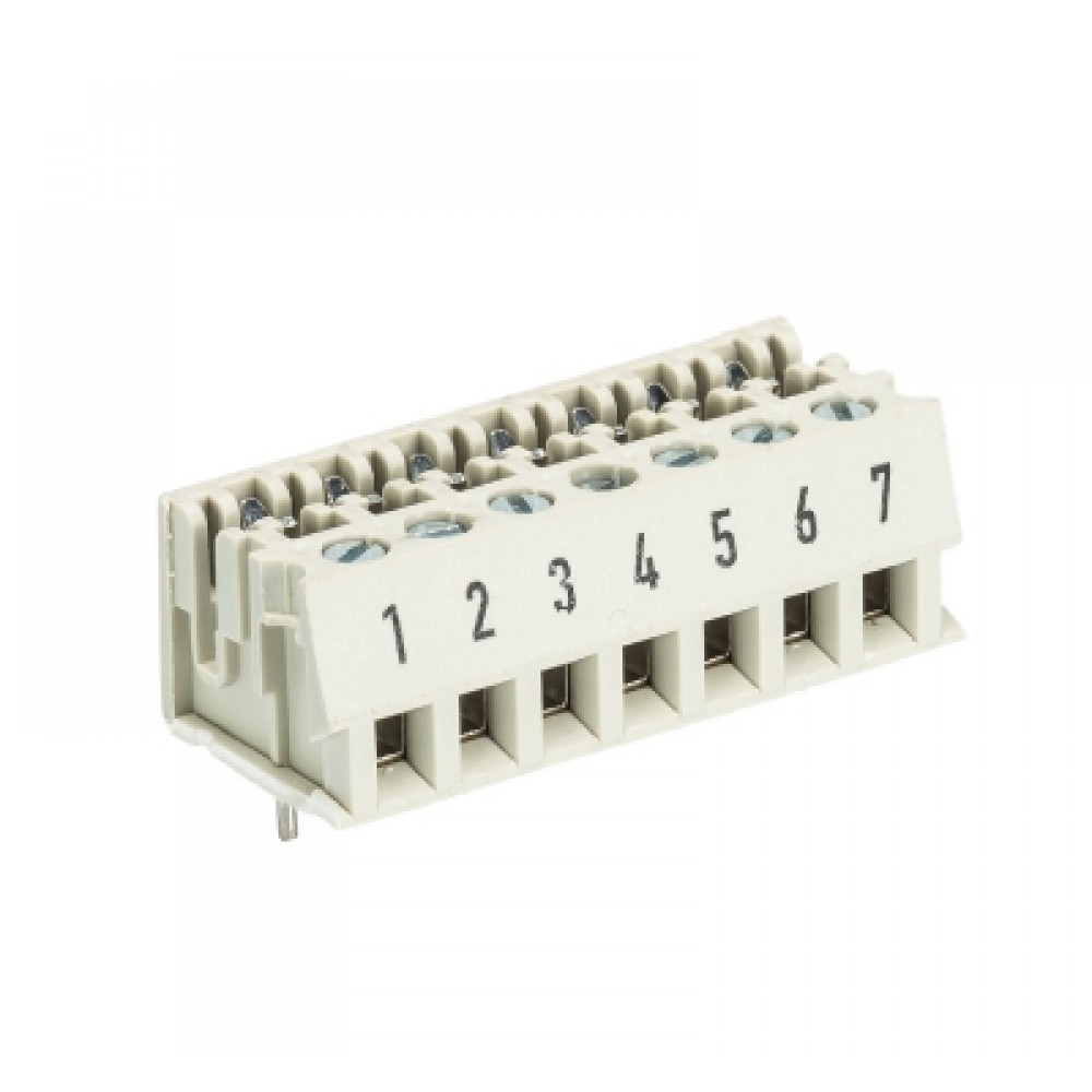 Клемма Wiecon LPSTL 1 / 7, Клемма для торцевого подключения к печатной плате, подвод кабеля сбоку, шаг: 5.0 мм, 7 полюсов, фиксация провода винтовая, исполнение: с маркировкой, 250V, 5A, цвет: серый