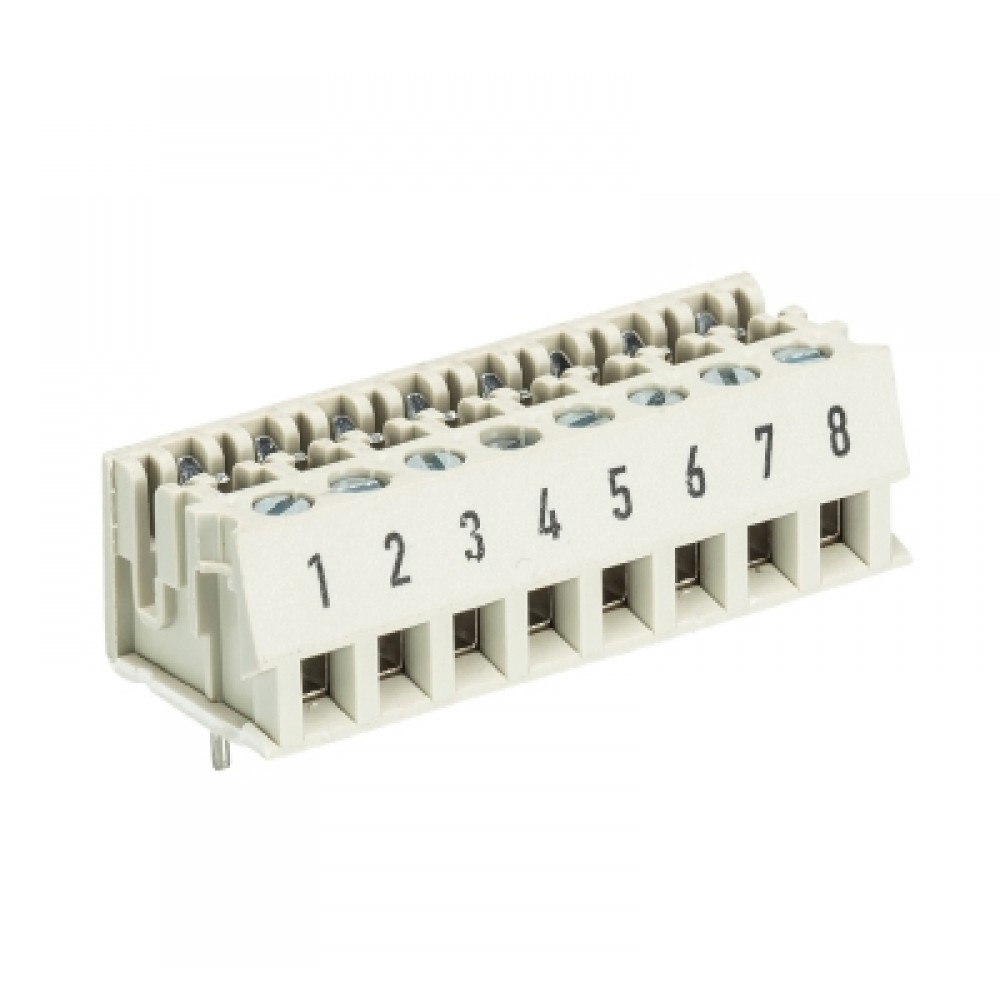 Клемма Wiecon LPSTL 1 / 8, Клемма для торцевого подключения к печатной плате, подвод кабеля сбоку, шаг: 5.0 мм, 8 полюсов, фиксация провода винтовая, исполнение: с маркировкой, 250V, 5A, цвет: серый