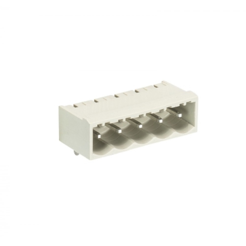 Вилочный разъем на плату 8213 S/5 W OB, Вилочный разъем, горизонтальный, на плату, шаг: 5.08 мм, 5 полюсов, фиксация на плате пайкой, исполнение: без маркировки, 300V, 12А, цвет: серый