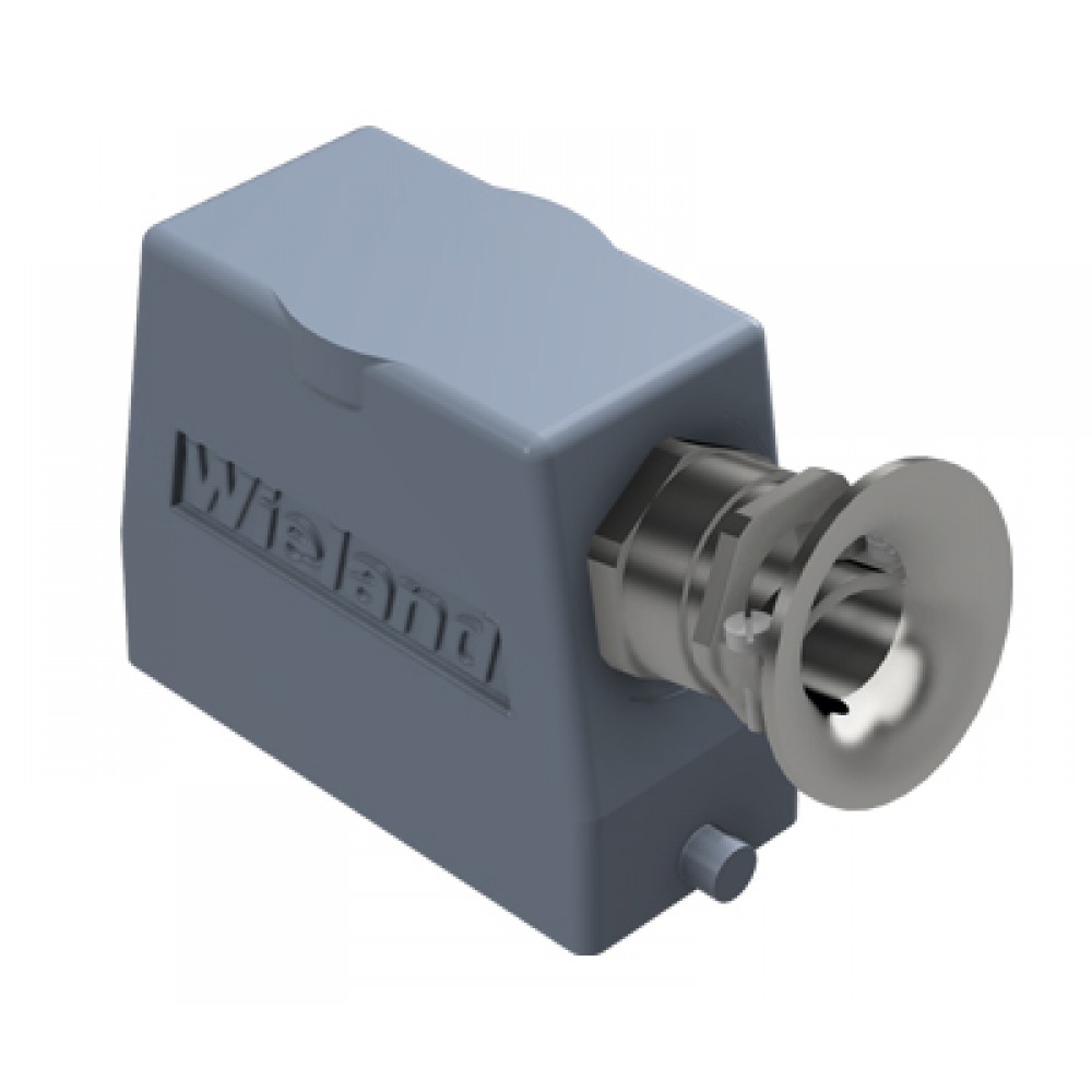 Крышка разъема на кабель, типоразмер 16B, высокое исполнение, без уплотнителя, 1 отверстие с резьбой для кабельных вводов M32x1,5, с боковым расположением, без защелки (упоры под одну защелку), материал корпуса: алюминиевый сплав