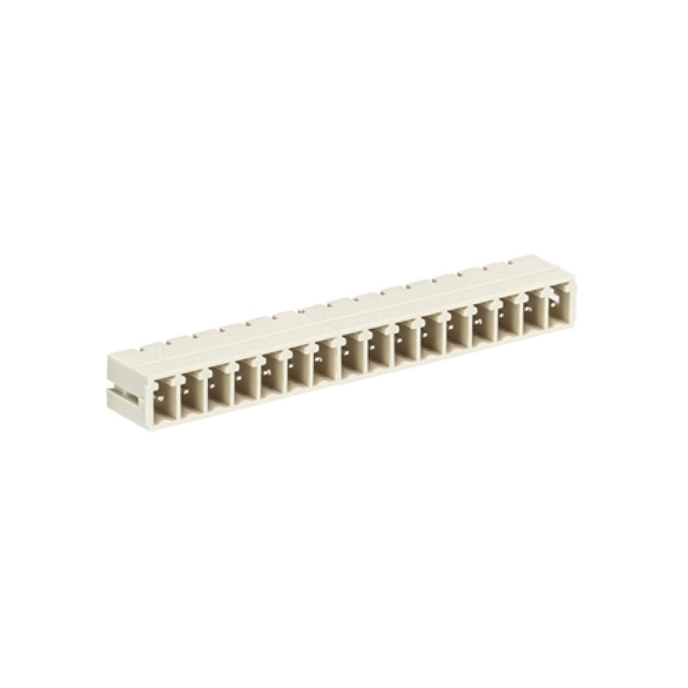 Вилочный разъем на плату 8513 S/16 W, Вилочный разъем, горизонтальный, на плату, шаг: 3.5 мм, 16 полюсов, фиксация на плате пайкой, исполнение: без маркировки, 250V, 8А, цвет: серый