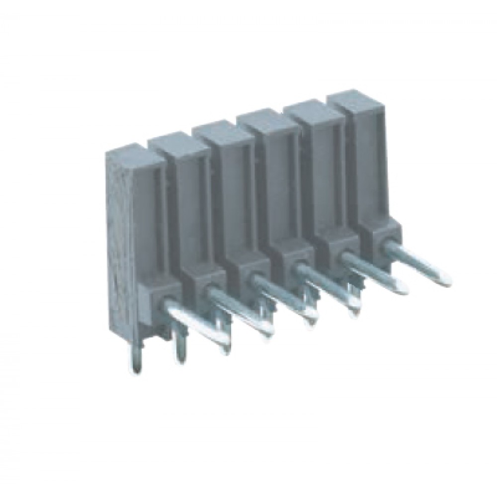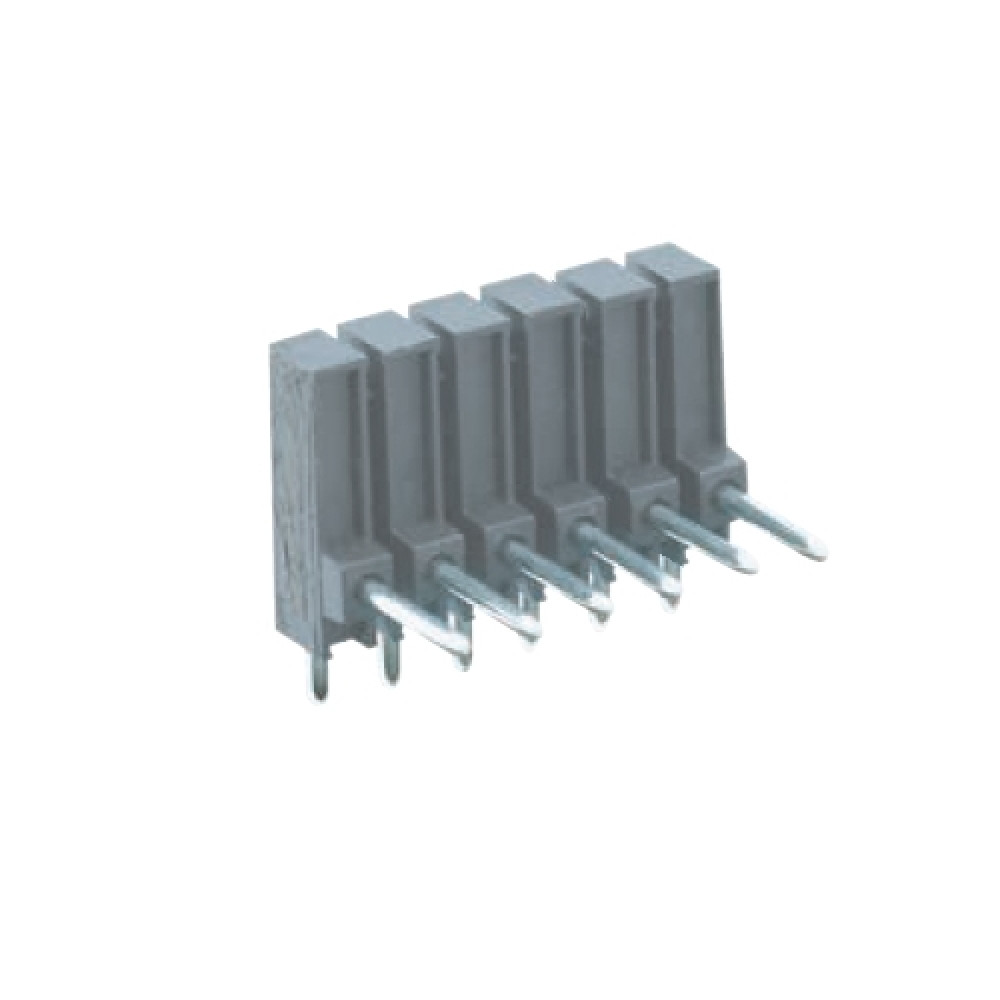 Контакт штыревой Z5.532.0625.0, Штыревой контакт, горизонтальный, на плату, диаметр штыря 0,8 мм, шаг 3,5 мм, 6 полюсов, фиксация на плате пайкой, 250V, 6А, цвет: серый, серия 8543