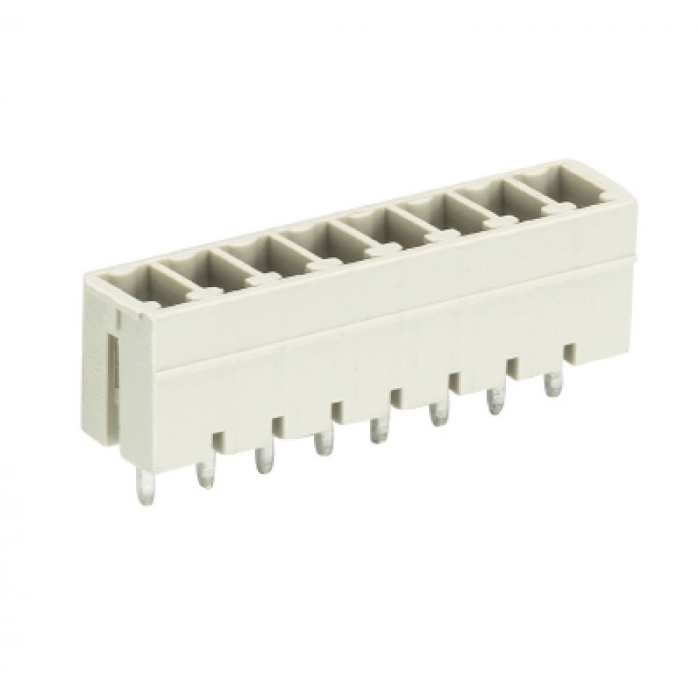 Вилочный разъем на плату 8813 S/8 G OB, Вилочный разъем, вертикальный, на плату, шаг: 3.81 мм, 8 полюсов, фиксация на плате пайкой, исполнение: без маркировки, 250V, 8А, цвет: серый