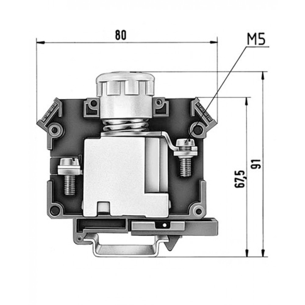 Предохранительная клемма, тип предохранителя: NEOZED, тип фиксации провода: винтовой, номинальное сечение: 25 мм кв., 63A, 400V, ширина: 30 мм, цвет: серый, тип монтажа: DIN35