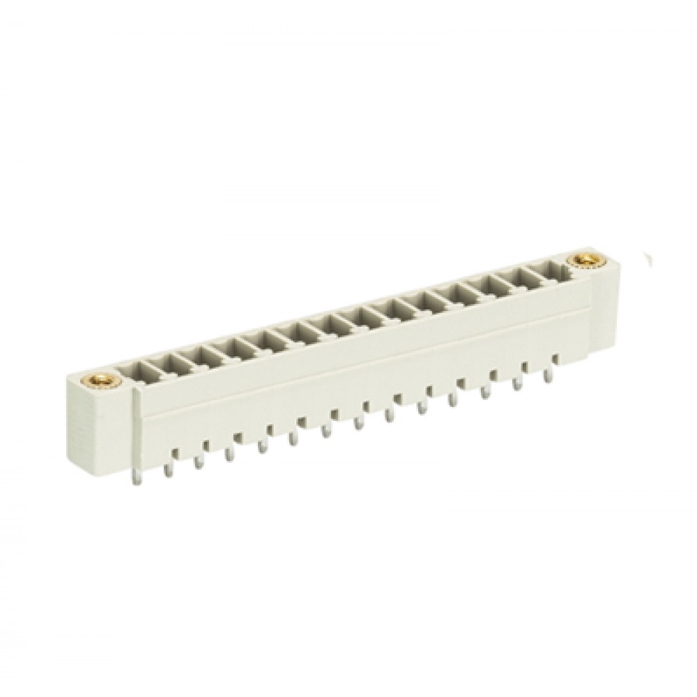 Вилка Wiecon 8813 S / 14 GF, Вилочный разъем, вертикальный, на плату, шаг: 3.81 мм, 14 полюсов, фиксация на плате пайкой, исполнение: без маркировки, с монтажными фланцами, 250V, 8А, цвет: серый