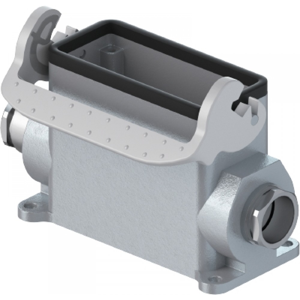 Основание разъема на панель, закрытое, типоразмер 16B, высокое исполнение, с уплотнителем, 2 отверстия с резьбой для кабельных вводов M32x1,5, с одной защелкой, без защитной крышки, материал корпуса: алюминиевый сплав