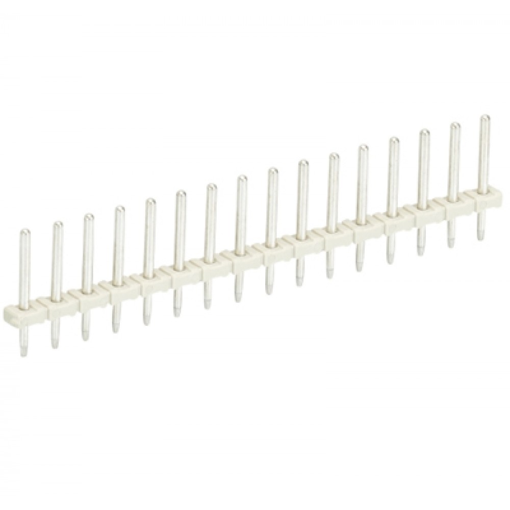 Контакт штыревой Z5.531.1625.0, Штыревой контакт, вертикальный, на плату, диаметр штыря 0,8 мм, шаг 3,5 мм, 16 полюсов, фиксация на плате пайкой, 250V, 6А, цвет: серый, серия 8543