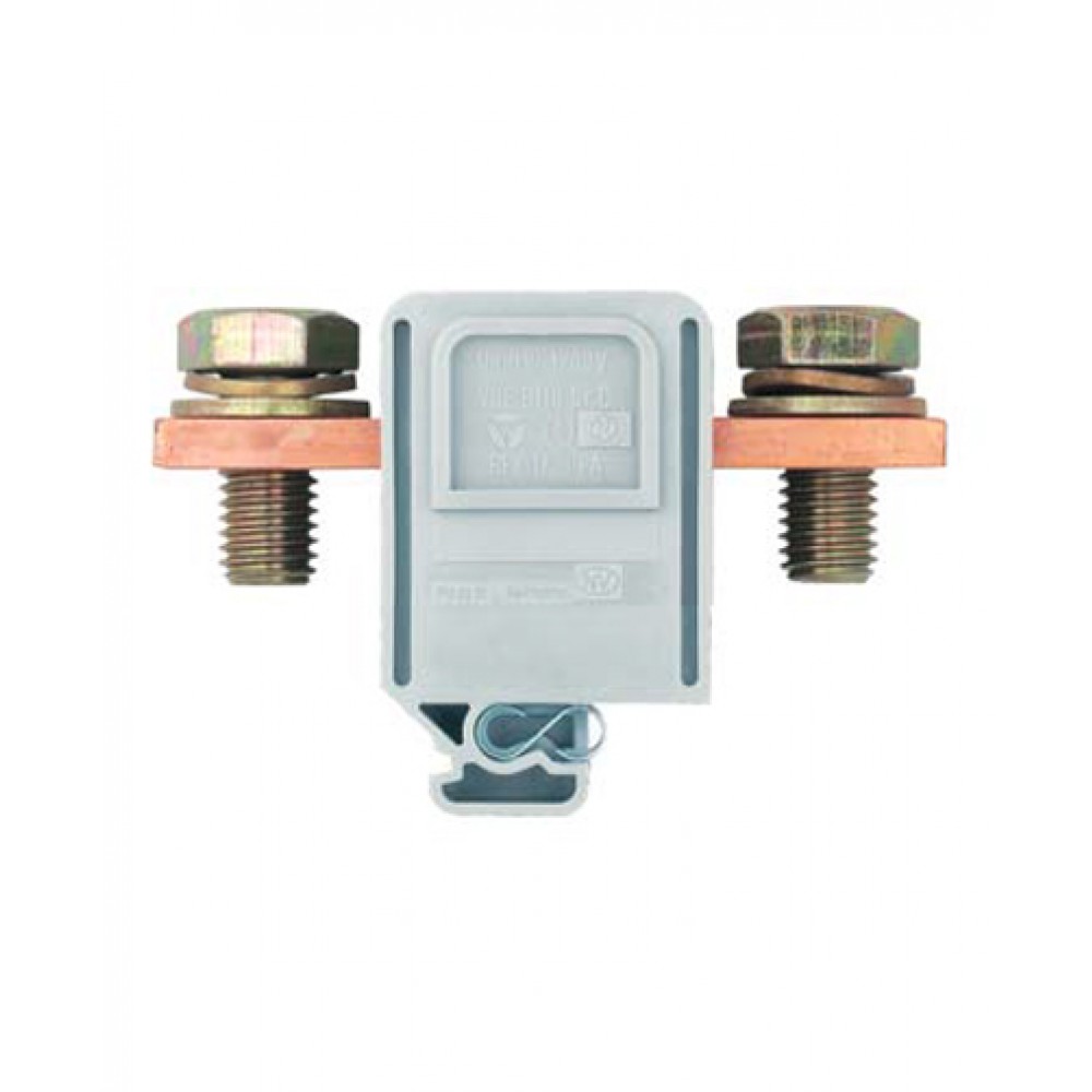 Болтовая клемма, М12, схема: болт - болт, тип фиксации провода: болт-болт, номинальное сечение: 185 мм кв., 353A, 1000V, ширина: 42 мм, цвет: серый, тип монтажа: G-рейка