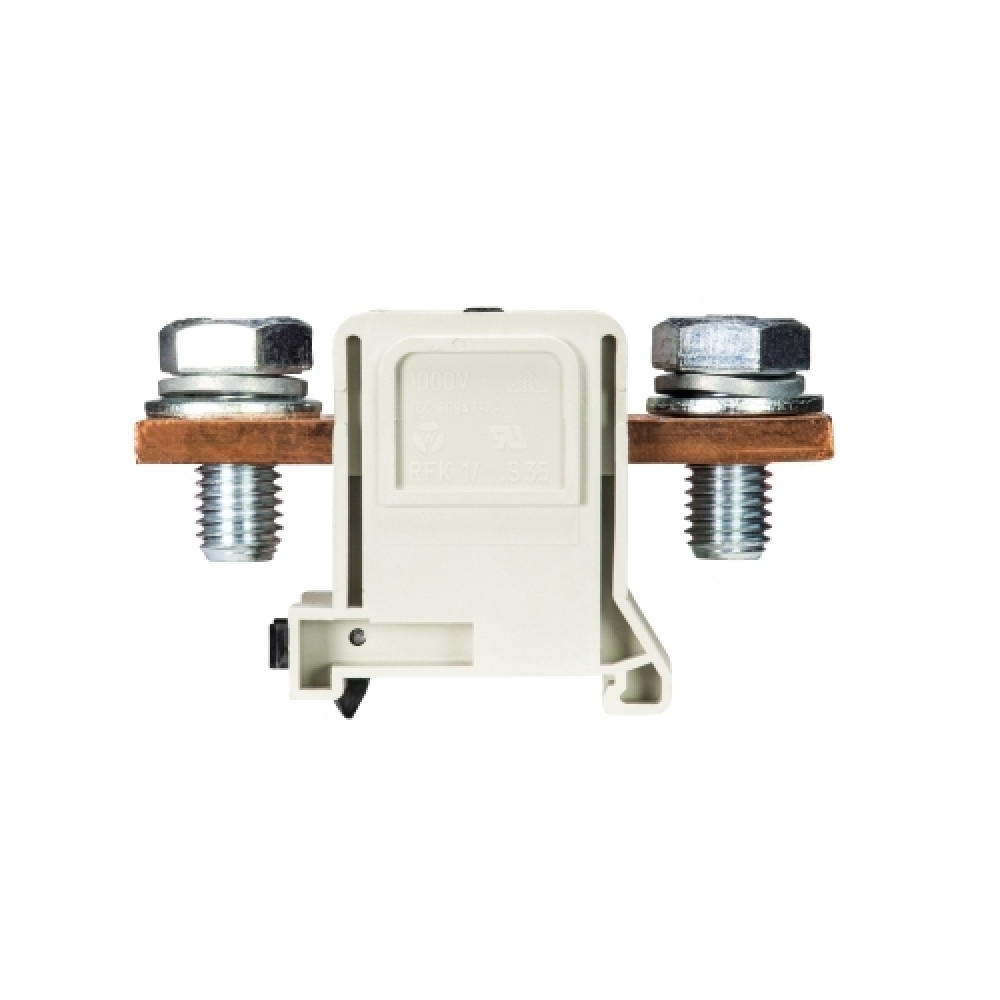 Доставка Болтовая клемма RFK 1/185 F S35 , Болтовая клемма, М12, схема: болт - болт, тип фиксации провода: болт-болт, номинальное сечение: 185 мм кв., 335A, 1000V, ширина: 42 мм, цвет: серый, тип монтажа: DIN35