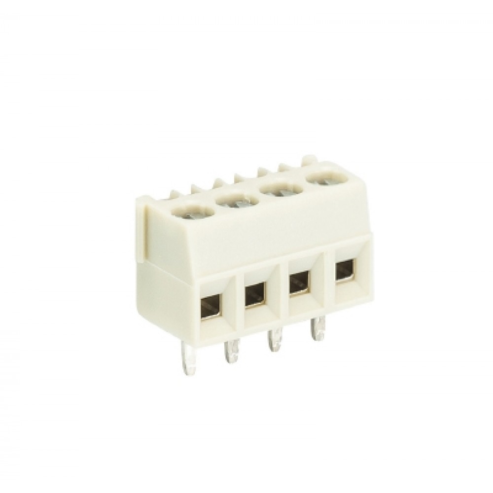 Клемма, горизонтальный подвод кабеля, на плату, шаг: 3.5 мм, 4 полюса, фиксация провода винтовая, исполнение: с маркировкой, 300V, 10A, цвет: серый