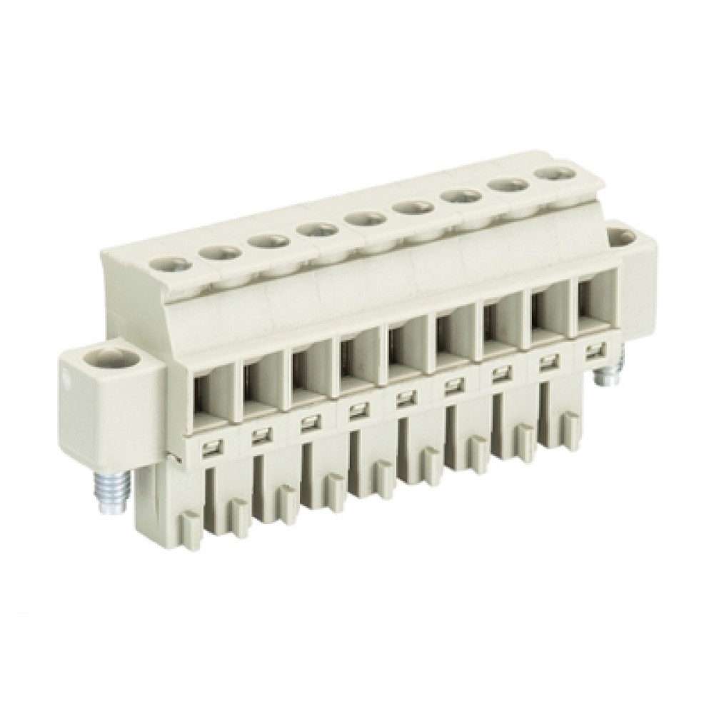 Розеточный разъем, прямой, на кабель, шаг: 3.81 мм, 9 полюсов, фиксация провода винтовая, исполнение: без маркировки, с монтажными фланцами, 250V, 8А, цвет: серый