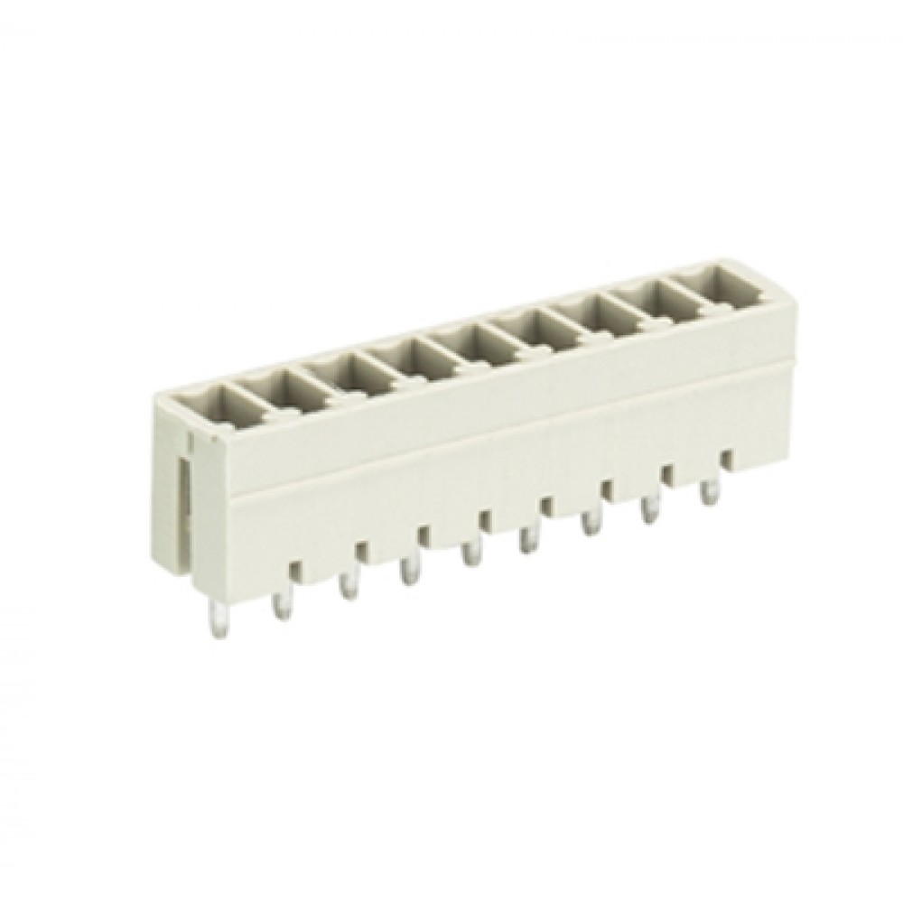 Вилочный разъем на плату 8813 S/9 G OB, Вилочный разъем, вертикальный, на плату, шаг: 3.81 мм, 9 полюсов, фиксация на плате пайкой, исполнение: без маркировки, 250V, 8А, цвет: серый