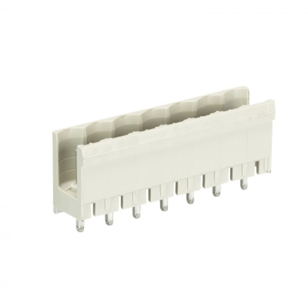 Вилочный разъем на плату 8213 S/7 G OB OF, Вилочный разъем, вертикальный, на плату, шаг: 5.08 мм, 7 полюсов, фиксация на плате пайкой, исполнение: без маркировки, без боковых стенок, 400V, 12А, цвет: серый