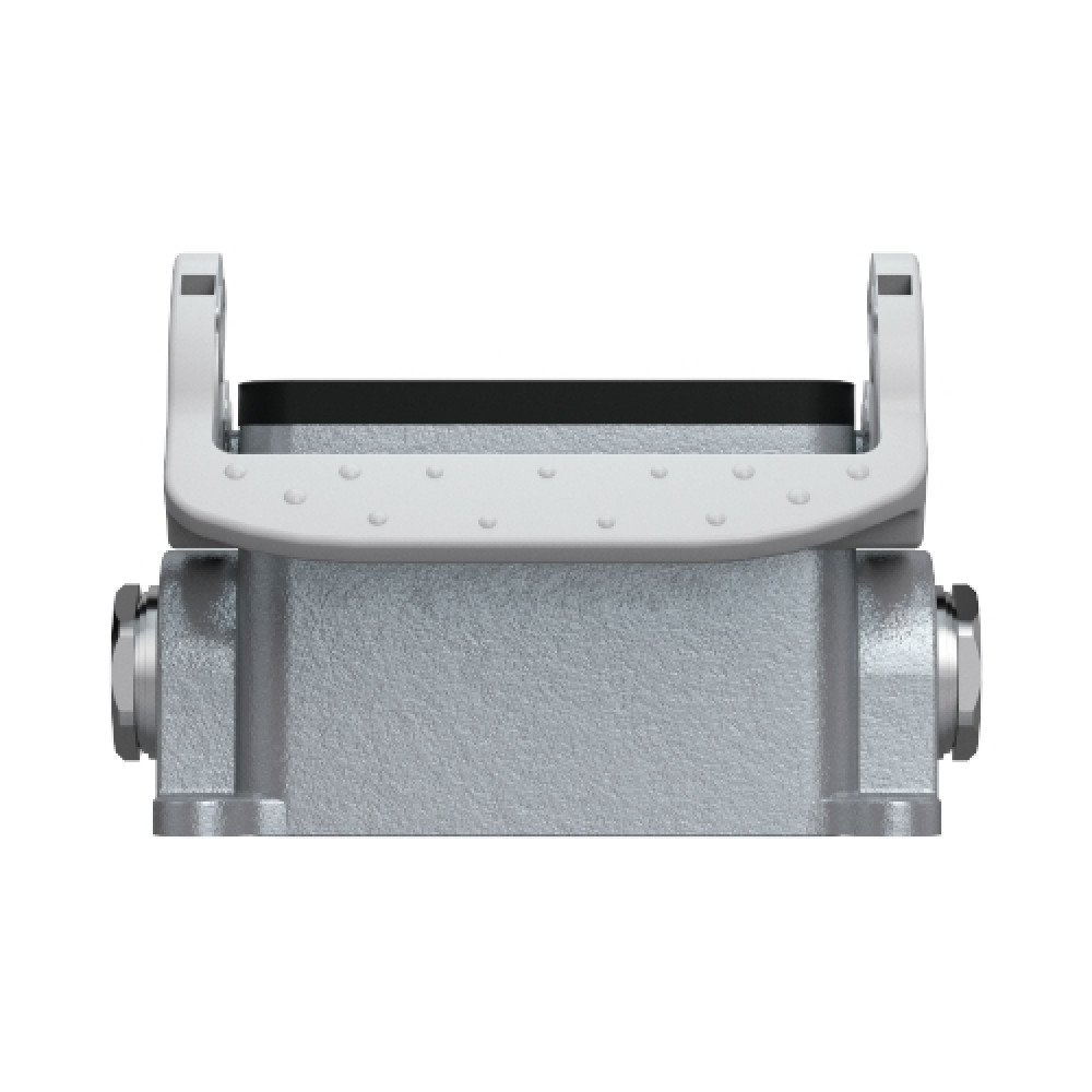 Основание разъема на панель, закрытое, типоразмер 6B, с уплотнителем, 2 отверстия с резьбой для кабельных вводов M20x1,5, с одной защелкой, без защитной крышки, материал корпуса: алюминиевый сплав
