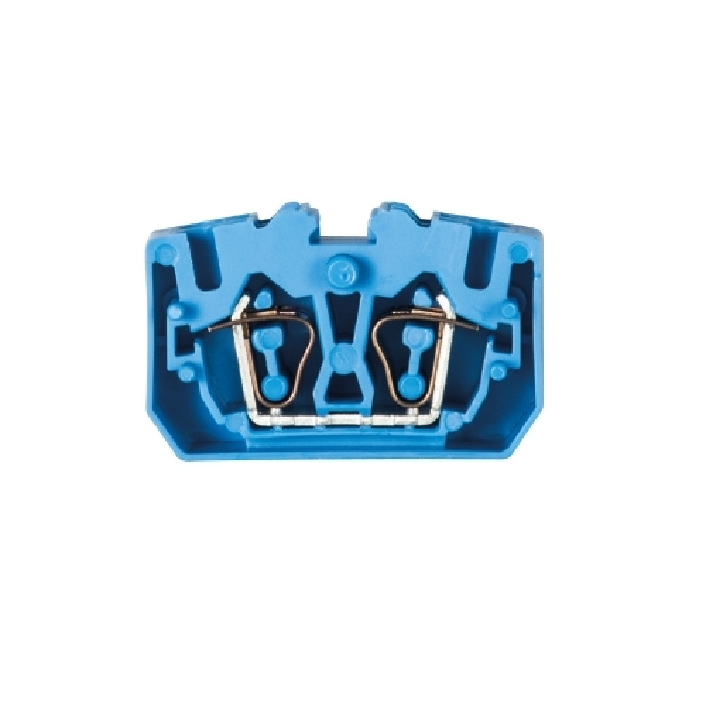 Проходная клемма, MINI, верхний подвод кабеля, 4 точки подключения, тип фиксации провода: пружинный, номинальное сечение: 2,5 мм кв., 24A, 800V, ширина: 10 мм, цвет: синий, тип монтажа: монтажные фланцы