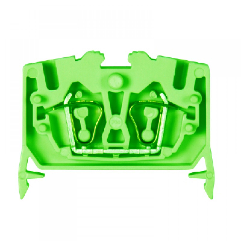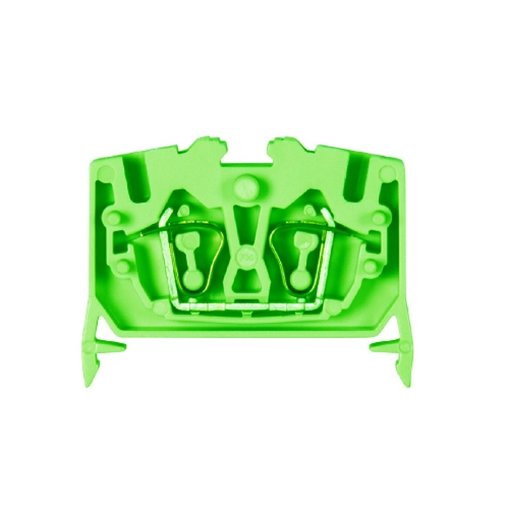 Проходная клемма, MINI, верхний подвод кабеля, 2 точки подключения, тип фиксации провода: пружинный, номинальное сечение: 2,5 мм кв., 24A, 800V, ширина: 5 мм, цвет: зеленый, тип монтажа: DIN35