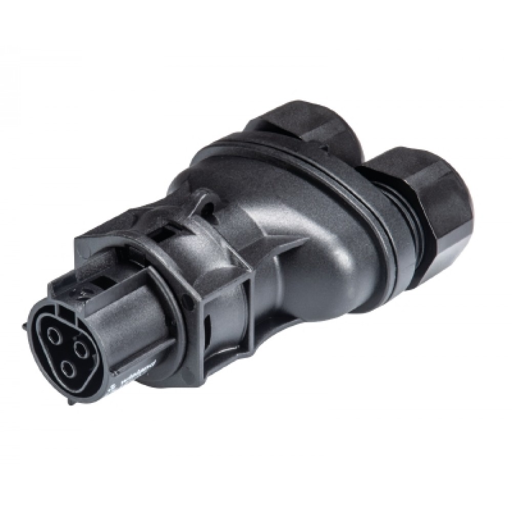 Разъем RST20i3 96.031.0253.1, Сплиттер, розеточный разъем на кабель диам. 6-10 мм, IP68(69k), 3 полюса, пружинная фиксация провода, номинальные характеристики: 250/400V, 20A, цвет: черный, серия RST Classic