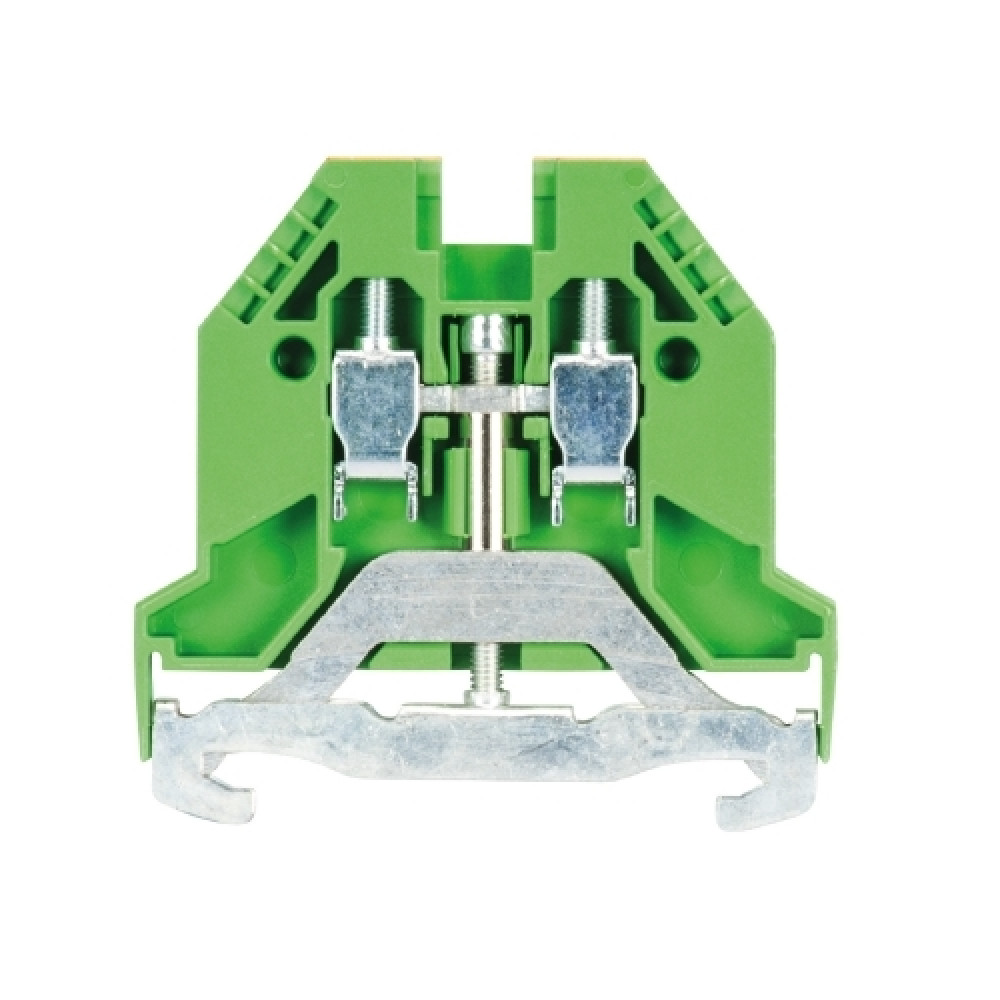 Заземляющая клемма, тип фиксации провода: винтовой, номинальное сечение: 2,5 мм кв., ширина: мм, цвет: желто-зеленый, тип монтажа: DIN35
