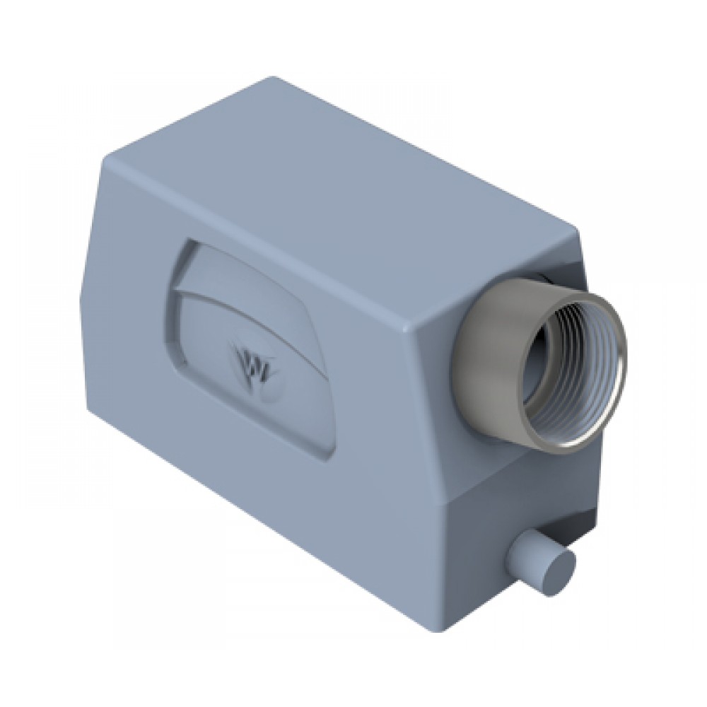Крышка разъема на кабель, типоразмер 16B, без уплотнителя, 1 отверстие с резьбой для кабельных вводов M25x1,5, с резьбовым удлинителем, с боковым расположением, без защелки (упоры под одну защелку), материал корпуса: алюминиевый сплав
