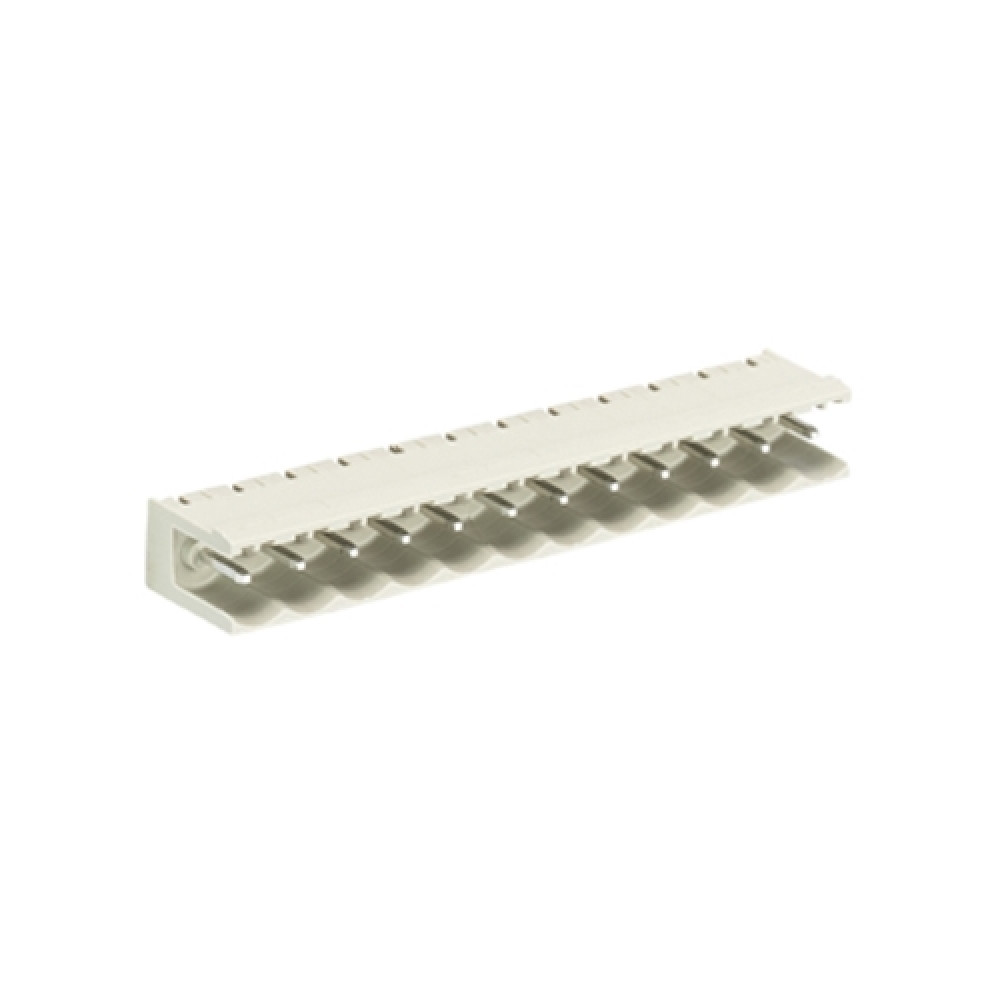 Вилочный разъем на плату 8113 S/12 W OB OF, Вилочный разъем, горизонтальный, на плату, шаг: 5.0 мм, 12 полюсов, фиксация на плате пайкой, исполнение: без маркировки, без боковых стенок, 400V, 12А, цвет: серый