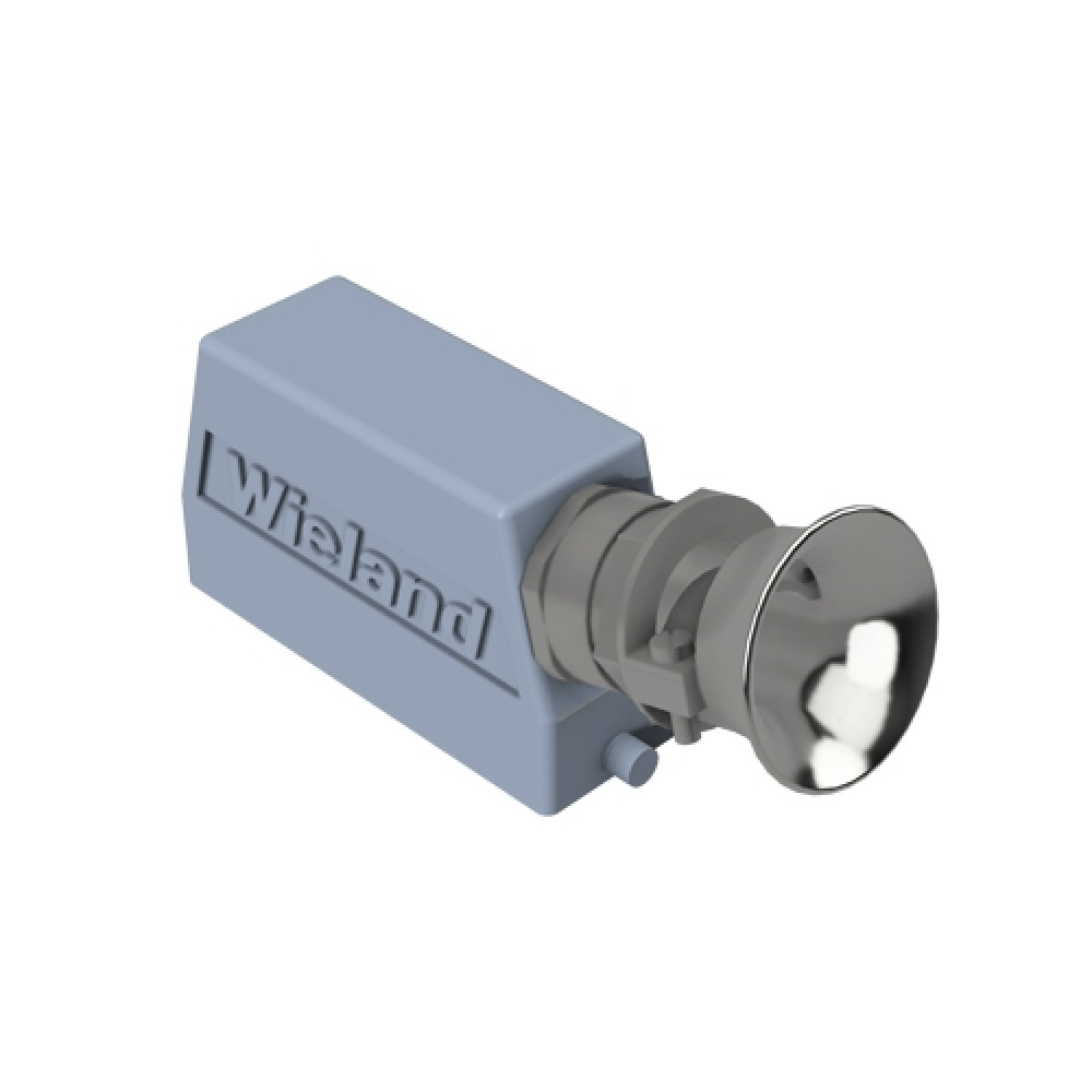 Крышка разъема на кабель, типоразмер 24B, без уплотнителя, 1 отверстие с резьбой для кабельных вводов M32x1,5, с резьбовым удлинителем, с боковым расположением, без защелки (упоры под одну защелку), материал корпуса: алюминиевый сплав