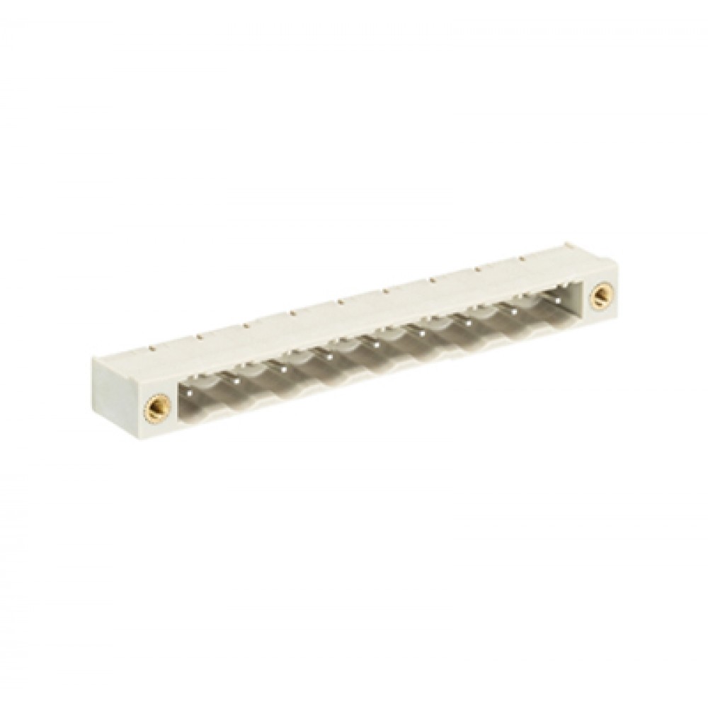 Вилочный разъем на плату 8313 S/9 WF OB, Вилочный разъем, горизонтальный, на плату, шаг: 7.5 мм, 9 полюсов, фиксация на плате пайкой, исполнение: без маркировки, с монтажными фланцами, 690V, 12А, цвет: серый