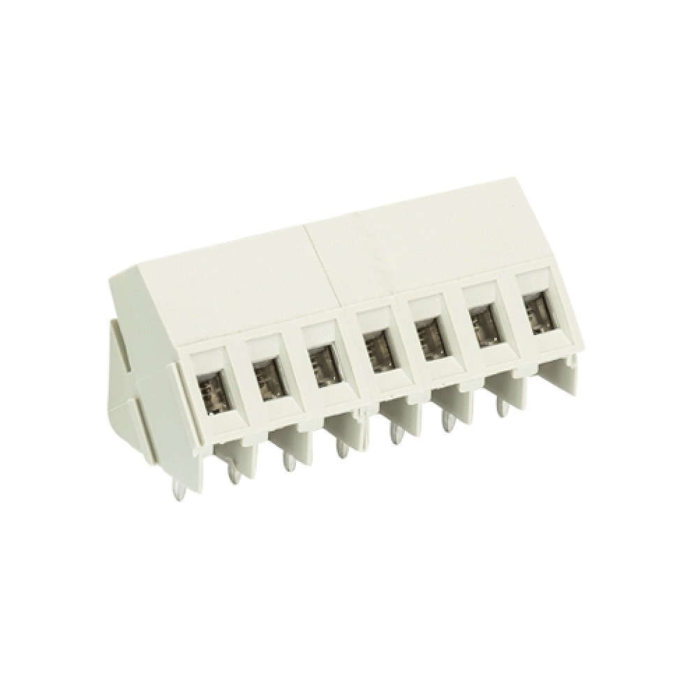 Клемма 8253/7, Клемма, подвод кабеля 35 град., на плату, шаг: 5.08 мм, 7 полюсов, фиксация провода винтовая, исполнение: без маркировки, 300V, 16А, цвет: серый