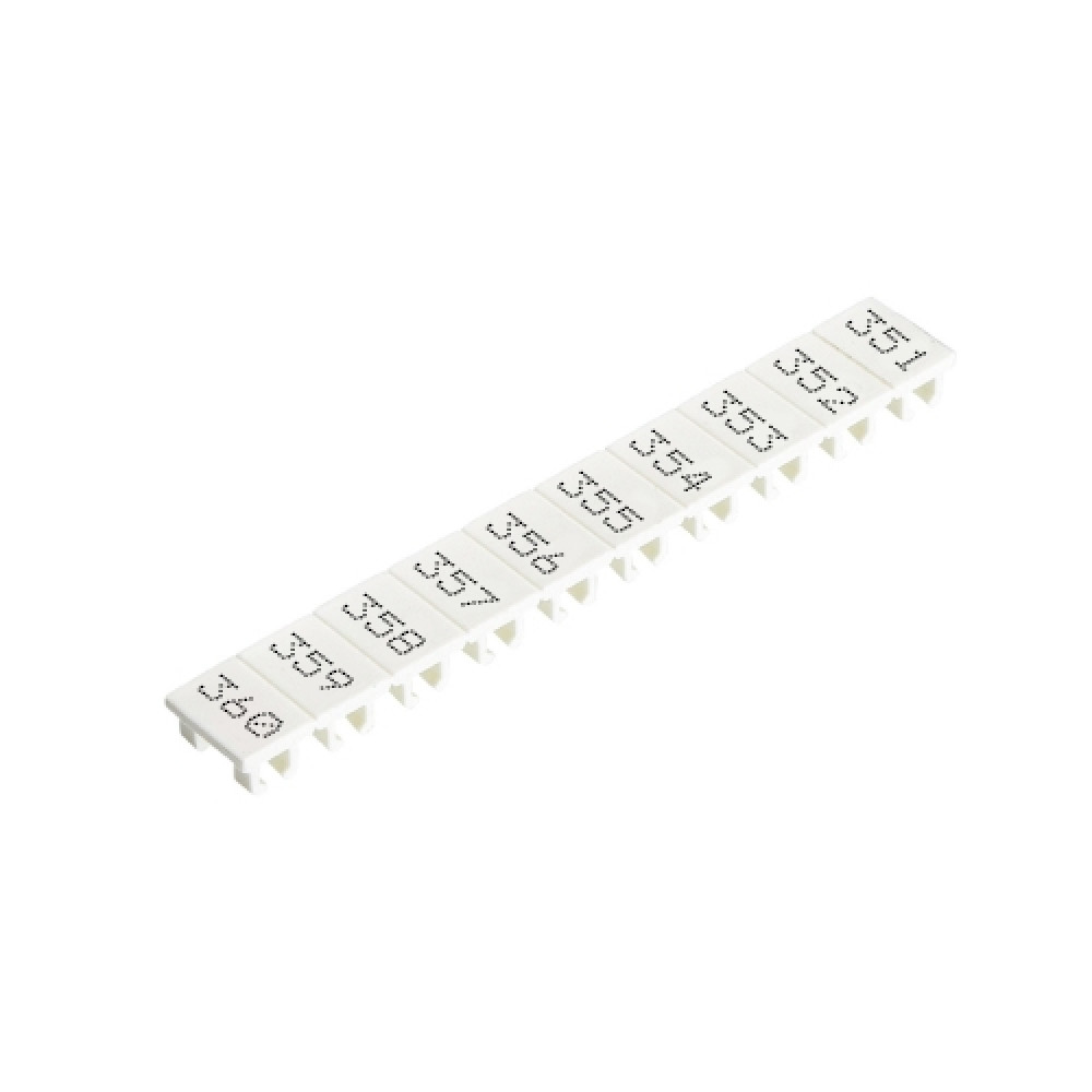 Маркировочные шильдики, для клемм сечением 2,5 мм.кв., боковая / верхняя, 10 шильдиков, нанесенные символы: 351...360, с горизонтальным расположением, размер шильдика: 4,8 x 8,3 мм, цвет: белый