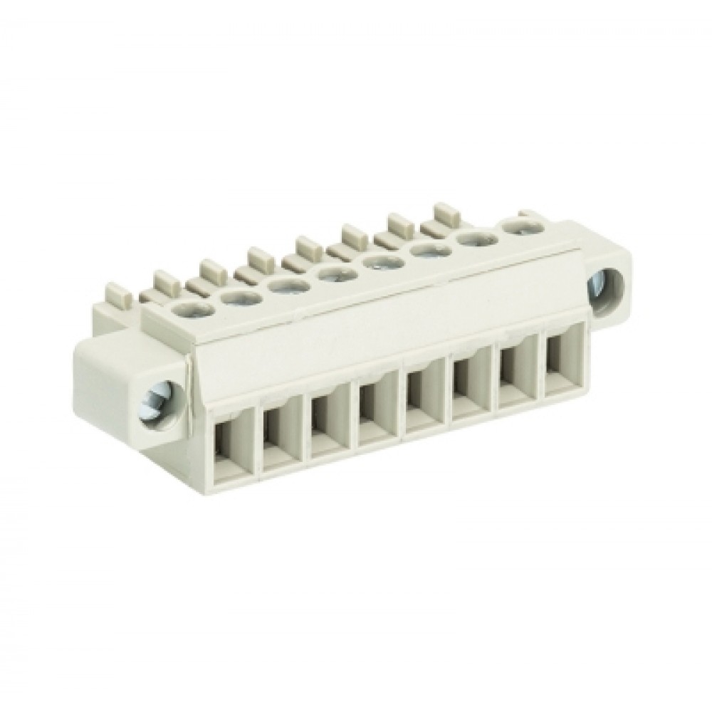 Розеточный разъем на кабель 8813 B/8 F OB, Розеточный разъем, угловой, на кабель, шаг: 3.81 мм, 8 полюсов, фиксация провода винтовая, исполнение: без маркировки, с монтажными фланцами, 250V, 8А, цвет: серый