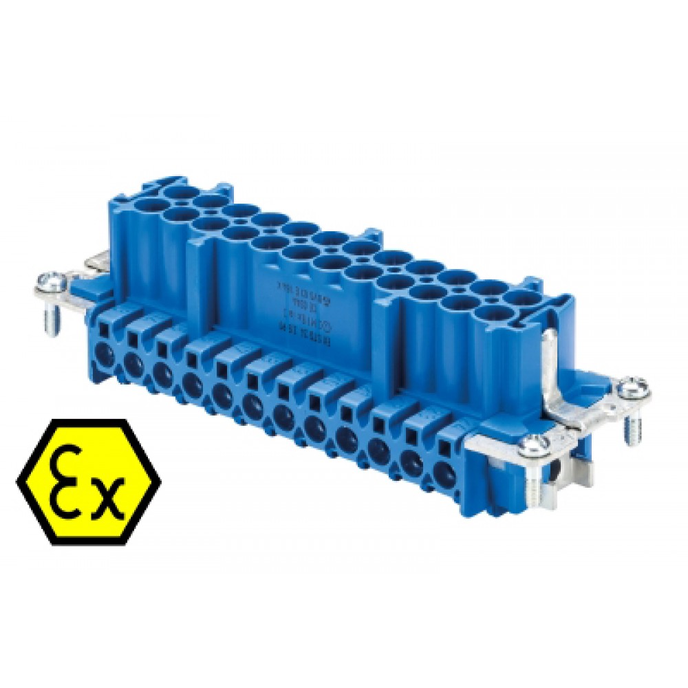 Вилочная контактная вставка взрывозащищенного разъема REVOS Ex, Size 24, винтовая фиксация, с защитой провода, 24 полюсов + РЕ, 90 V, до 16 A, тип покрытия контактов: золото