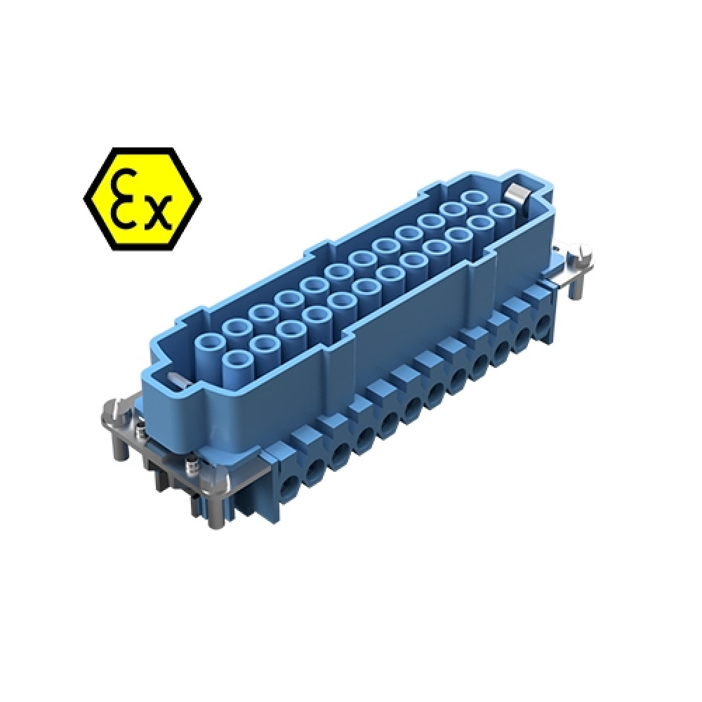 Розеточная контактная вставка взрывозащищенного разъема REVOS Ex, Size 24, винтовая фиксация, с защитой провода, 24 полюсов + РЕ, 90 V, до 16 A, тип покрытия контактов: золото