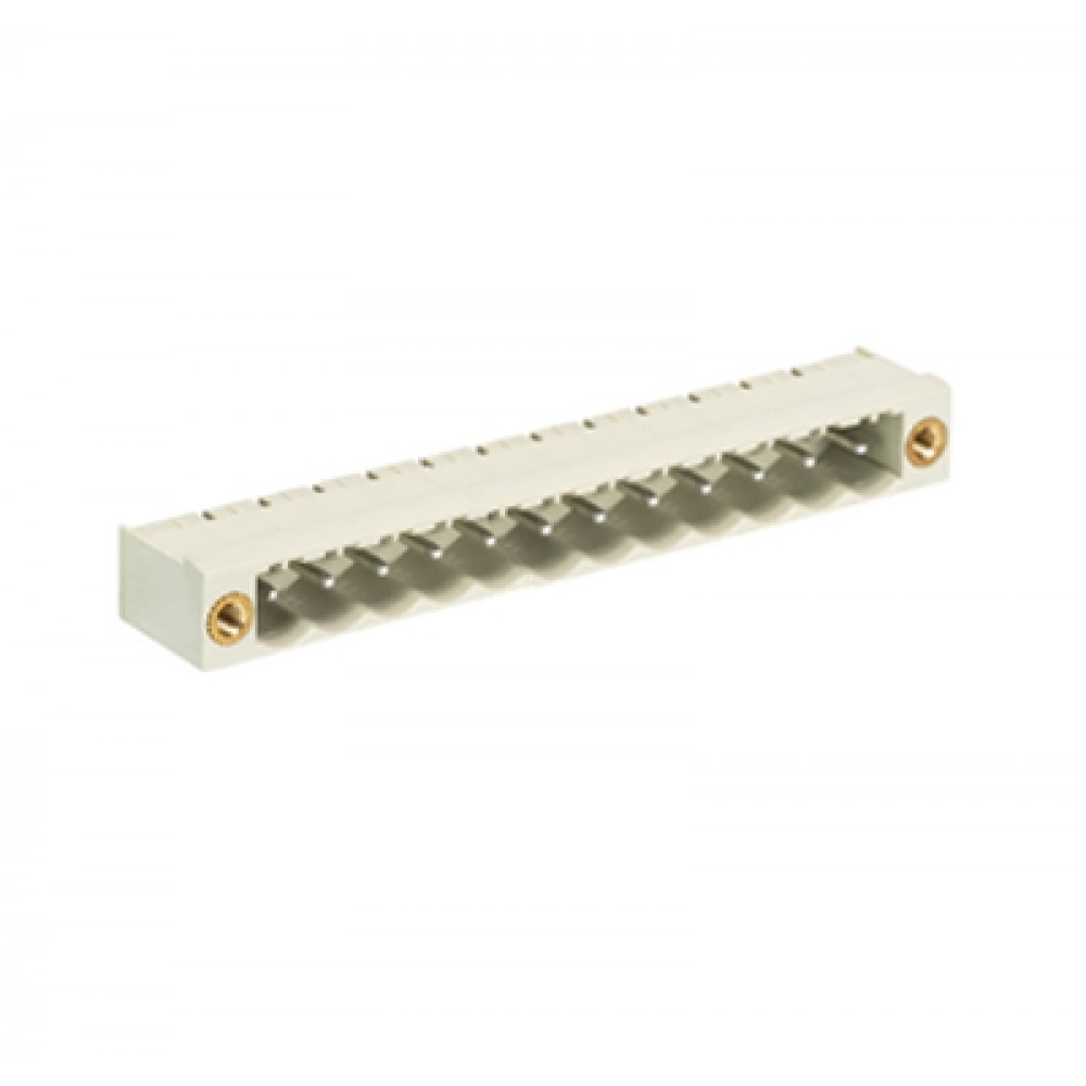 Вилочный разъем на плату 8113 S/12 WF OB, Вилочный разъем, горизонтальный, на плату, шаг: 5.0 мм, 12 полюсов, фиксация на плате пайкой, исполнение: без маркировки, с монтажными фланцами, 300V, 12А, цвет: серый